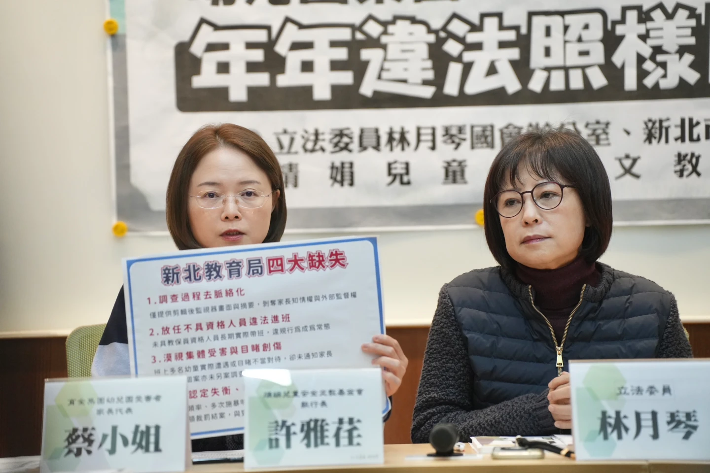 林月琴表示,本次土城案中,未具教保員資格人員長期違法進入教室帶班,並非突發事件,令人質疑教育局是否未定期稽查?未盡到主管機關適當的監督?顯示現行查核與督導機制,無法即時發現並阻止明顯違規行為。且於此案中,師生比明顯與法規不符,教育局也沒有進行裁罰。