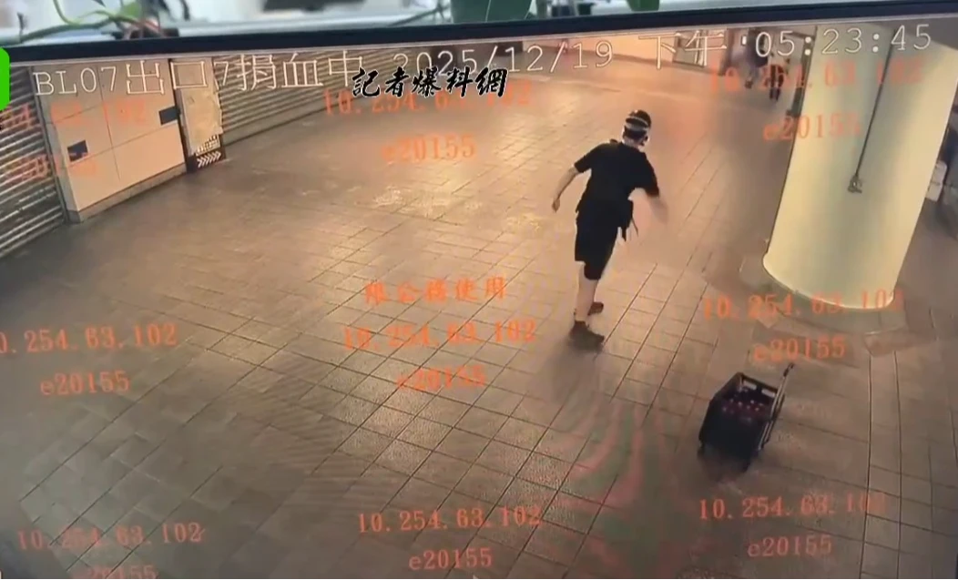 根據曝光畫面顯示,1名男子戴著防毒面具,拖著一箱黑色行李箱,隨即拿出一罐罐煙霧彈,逐一點火丟擲,現場有學生背樂器經過看到,嚇得急逃,嫌犯陸續丟擲多罐後,從容離去。