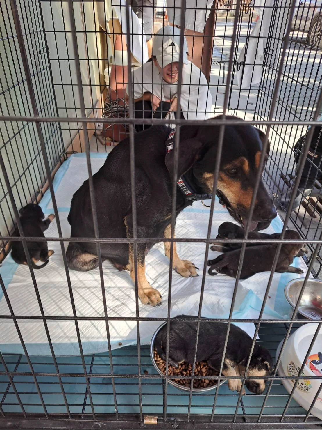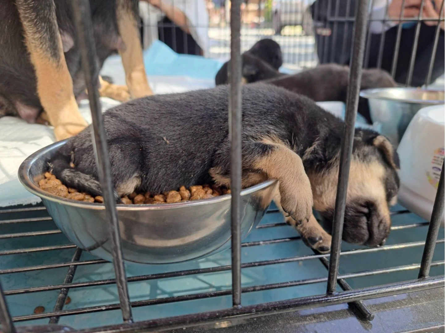 近期還有災區狗媽媽跟新生小狗也順利被救出來,狗媽媽受到驚嚇,四天沒吃飯,幼仔們則累到趴下,但都已經平安無事。