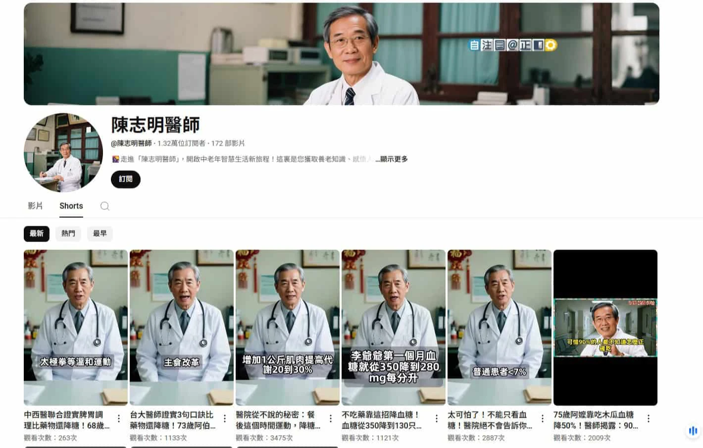 【記者陳力維/綜合報導】近期YouTube平台上流傳一名自稱曾任職台大醫院、台北榮總的醫師陳志明,標題聳動的影片,宣揚台大與北榮發現「糖尿病元兇是細菌感染」,並推廣所謂神技「革命性除菌療法」可3個月內奇蹟康復。對此,北榮與台大醫院均澄清強調,從未發表此類研究,且糖尿病屬於代謝性疾病而非細菌感染,更查無此陳志明醫師,呼籲民眾千萬不可聽信謠言而擅自停藥。專家進一步分析影片揭露,此「陳志明」根本是AI製造的虛構假醫師!
