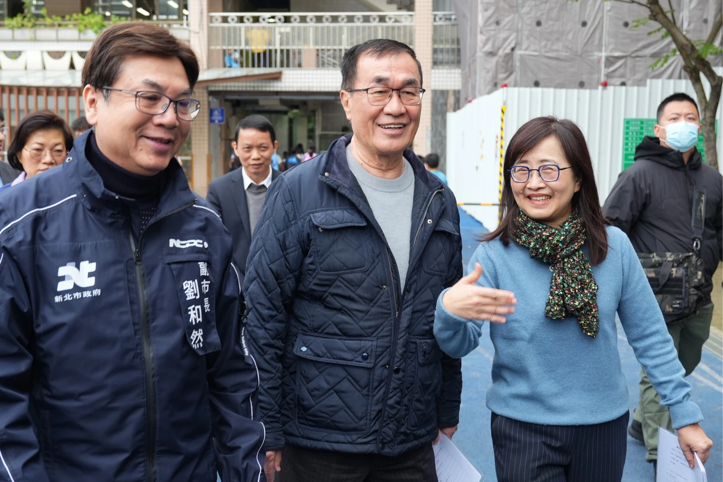 台北市長蔣萬安、副市長李四川、林奕華9日上午參訪新北市埔墘公托中心、莊敬公共托育中心,由新北市長侯友宜、副市長劉和然全程陪同。