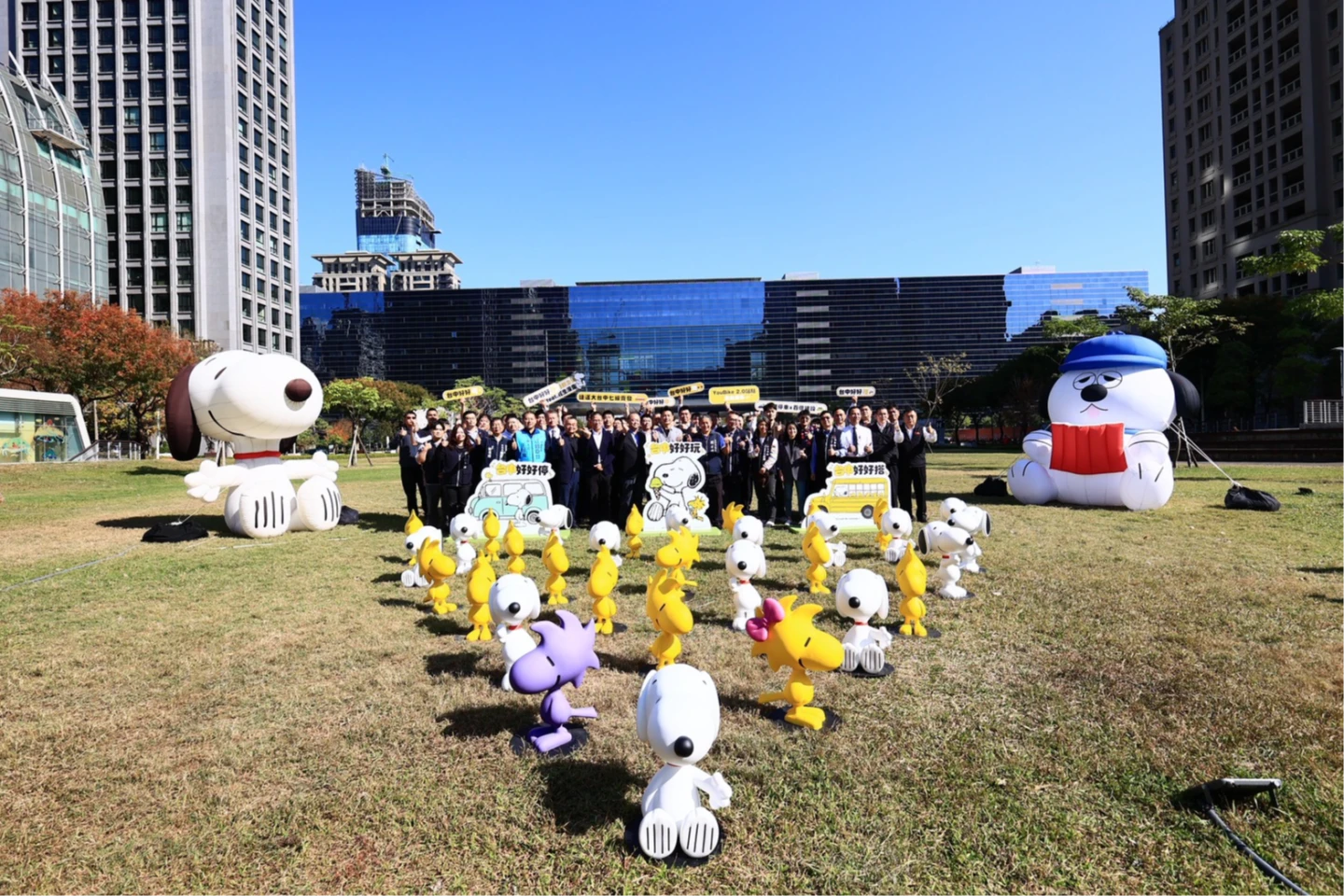 為替計畫暖身並提前凝聚話題,交通局同步推出前導活動,自即日起至2月22日止,在市政公園展出高達3公尺的Snoopy與Olaf大型氣偶,以及多組FRP立體裝置與拍照打卡點,打造「搶先版」Snoopy交通安全主題區,邀請民眾率先感受台中交通新風貌。