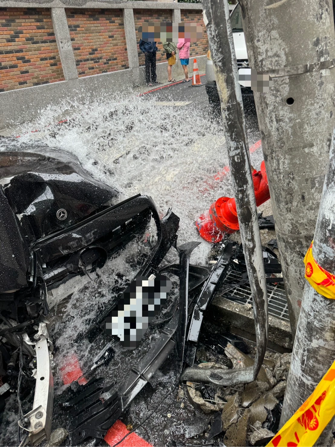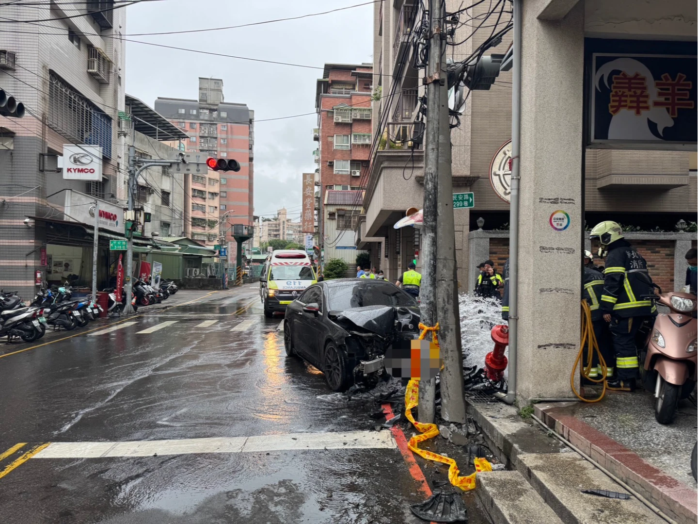 轎車逆向直撞消防栓!車頭全毀、路面成噴泉 駕駛包包搜出喪屍煙彈