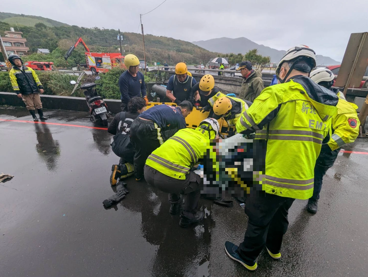 據了解,新北市消防局獲報出動汐止中隊、雙溪、貢寮、瑞芳、九份、秀峰分隊,共13車26人前往搶救,警消上午11時20分先救出弟弟,經檢視頭部有撕裂傷、身體擦挫傷,所幸意識清楚,包紮固定後送衛福部基隆醫院。