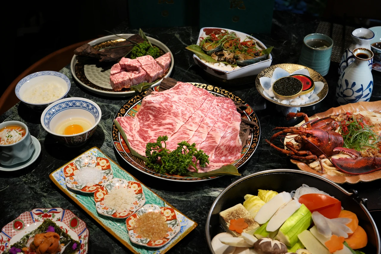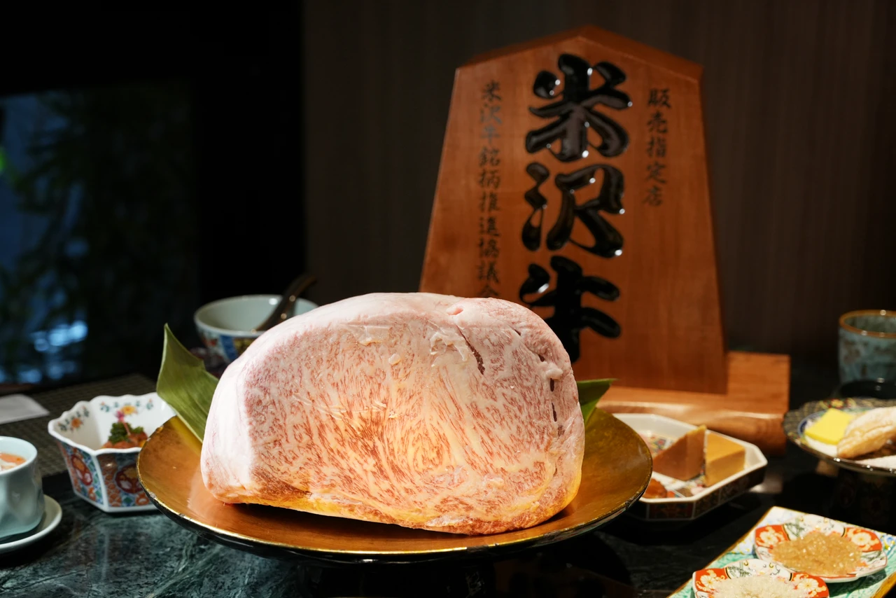 肉品匯聚日本三大銘柄牛,每日限量供應,能讓饕客一次品嚐米澤牛、雪姬牛與宮崎牛。雙前菜則有「日本海膽烏魚子粉豆腐」、「帝王蟹茶碗蒸」,湯品為「玉露鮮蝦真丈湯」,大快朵頤肉品後,經典蔬菜盤依循時令精選13種新鮮蔬食。