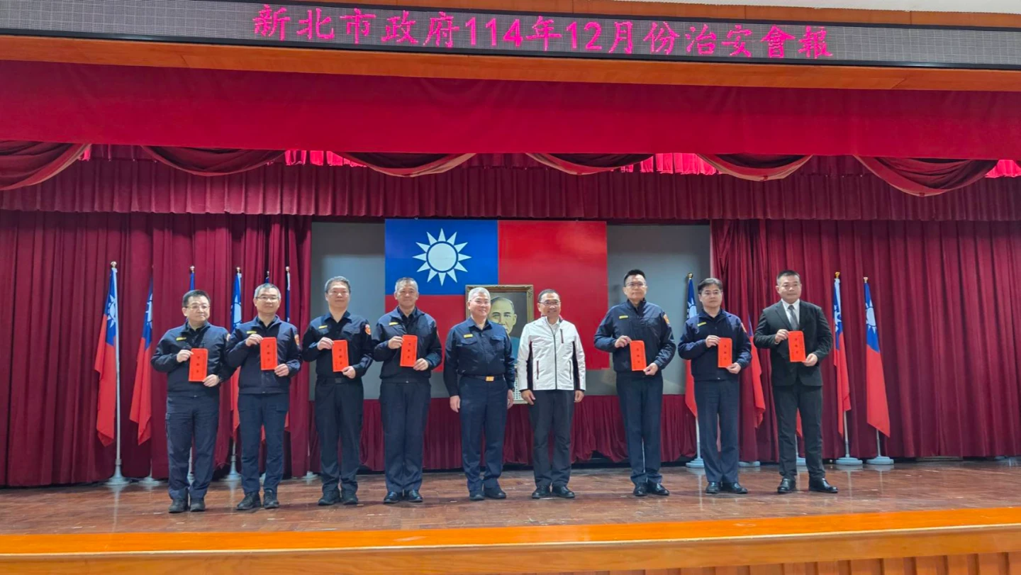 同時由市長侯友宜表揚「打擊詐欺」、「掃蕩幫派」、「查緝毒品」績優單位及「公共安全聯合稽查工作」有功人員,肯定各單位打擊犯罪具體成效,展現市府貫徹公權力之決心,共同打造新北市安全居住環境。