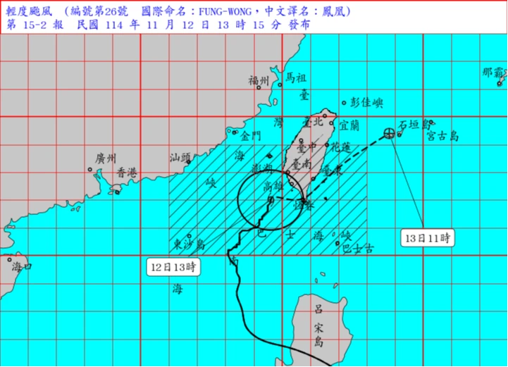 【記者陳亮諭/綜合報導】中央氣象署指出,颱風鳳凰強度持續減弱,七級風暴風半徑縮小為120公里,雲林及澎湖今早(12日)已脫離陸警範圍,今天傍晚至晚間將通過恆春半島一帶,隨後往東北出海,北台灣明天(13日)雨勢將再度增強。民間氣象平台「台灣颱風論壇」表示,「鳳凰快變成雞了」今晚颱風進到東部外海,北部雨又會多起來「好好珍惜目前這個中場休息」。