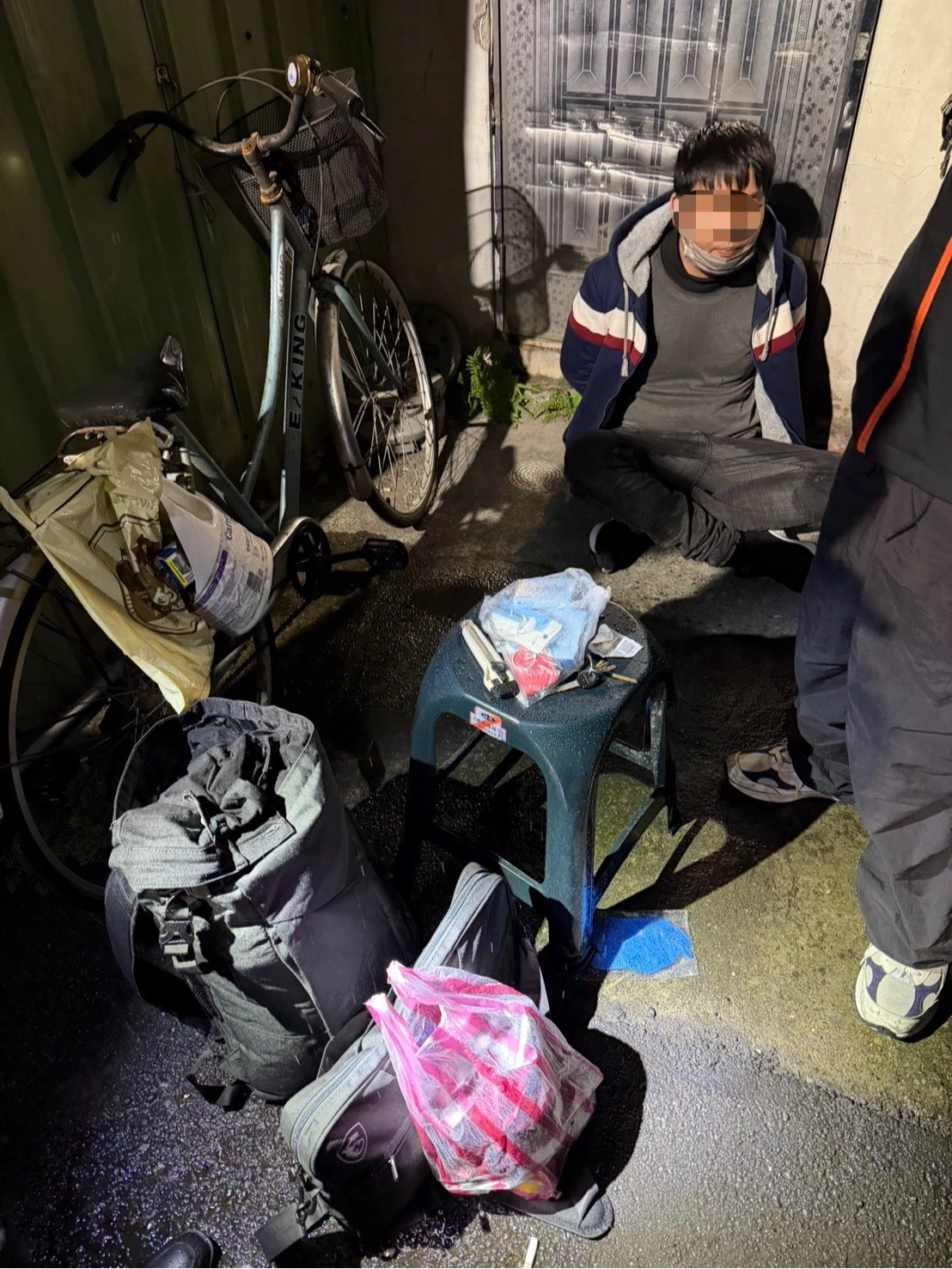 昨天晚上下起雨,專案小組一度緊張,深怕廖嫌會穿雨衣或是撐傘,增加追捕難度,所幸法網恢恢疏而不漏,昨天晚上6時許,廖嫌出現在新莊區新泰路216巷,當場被新莊警方逮捕。