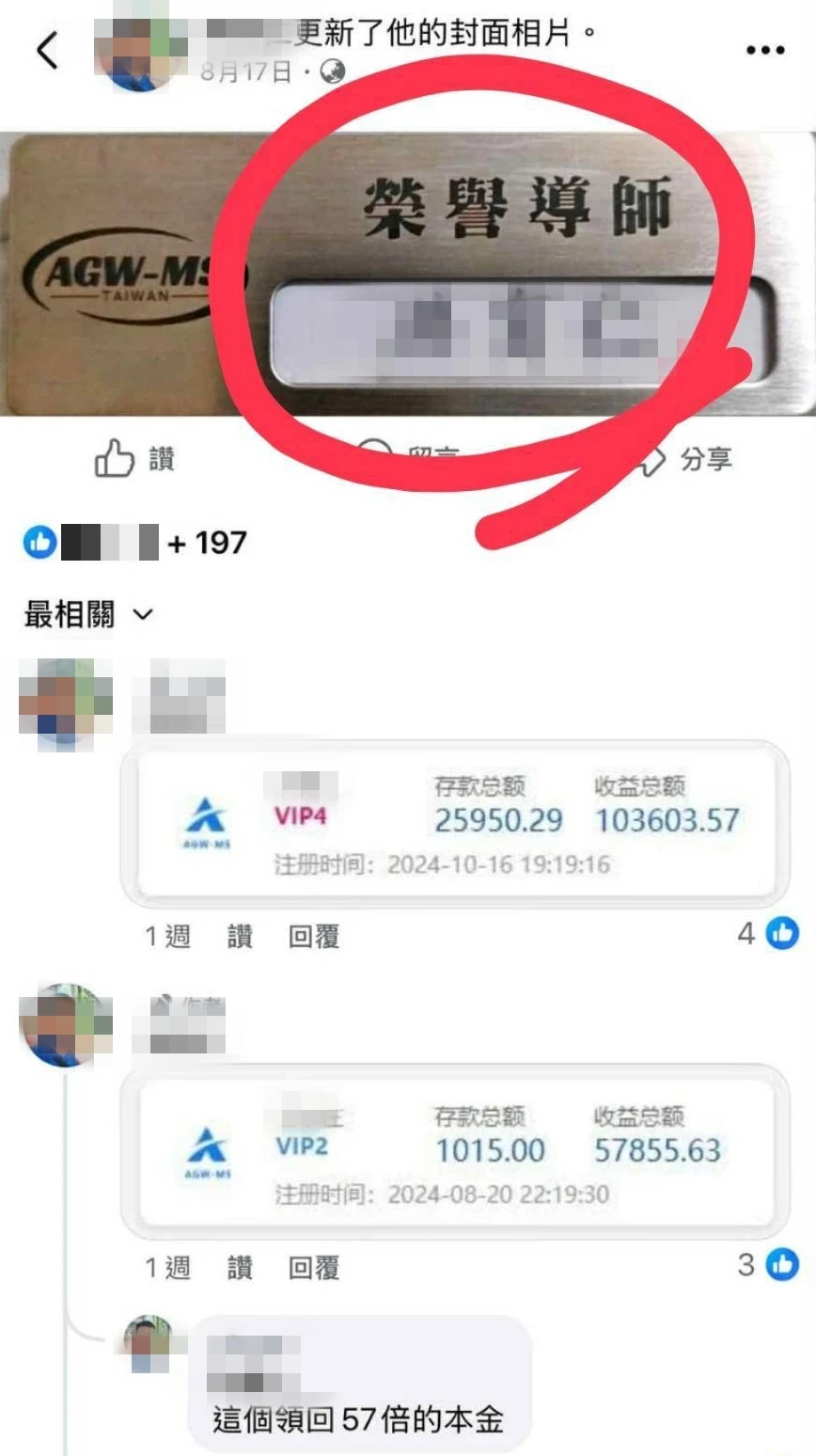 綜合網路示警文章,「AGW-MS」是典型的「高收益+傳銷」複合型龐氏騙局。偽裝成國際交易所,利用USDT虛擬貨幣規避監管,並透過AI技術生成假新聞與獲利截圖取信投資人。透過升級制度傳直銷,以「日息0.1%、年化收益36.5%」為誘餌,實則是以後金補前金,崩盤前夕再以補稅、驗證金等話術進行最後「收割」,等到泡沫化開,投資人驚覺上當。