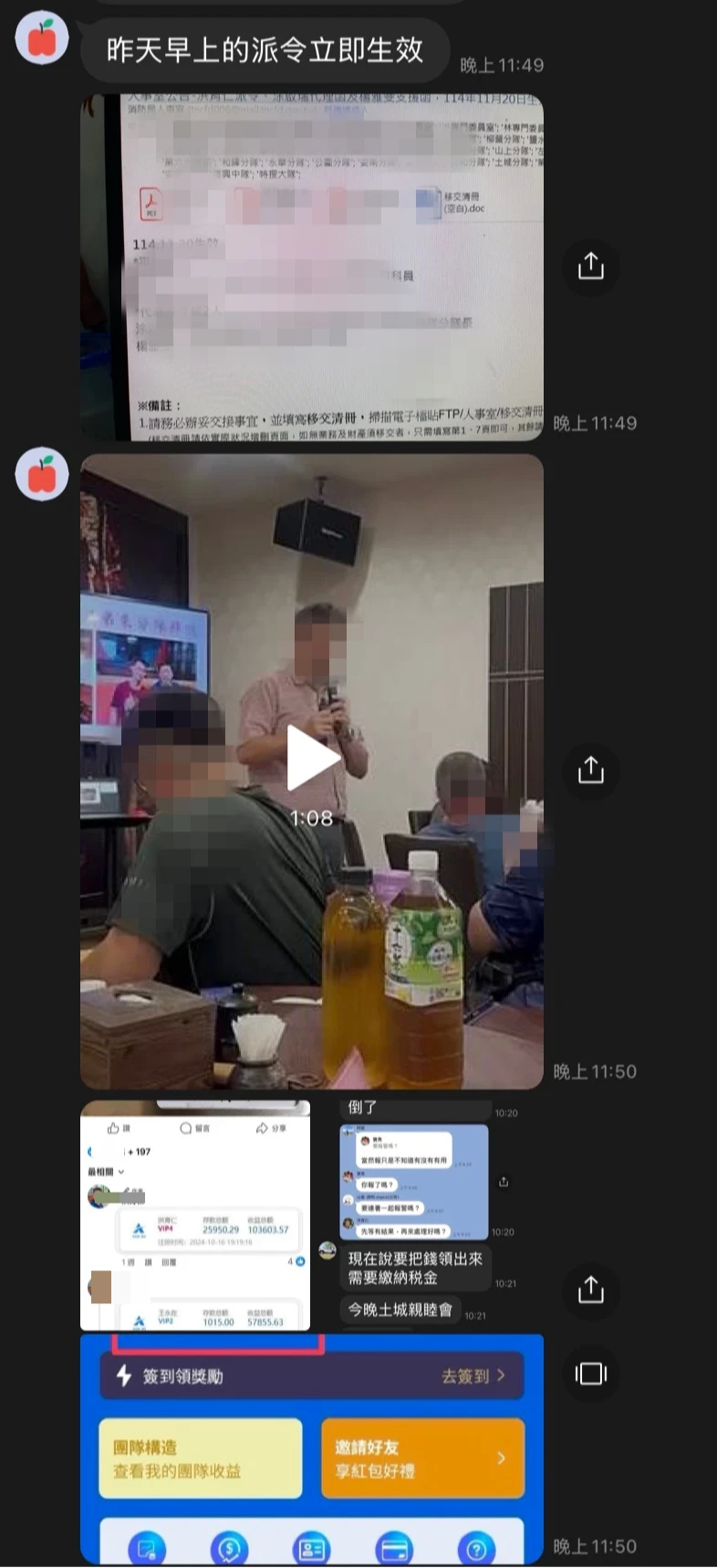 有警消指控,受邀聽分隊長講課推銷,宣稱平台可提供穩定配息,不找下線的話「錢滾得很慢」,只要拉入加入便可升級V1,獲利翻倍跳升,可月收18萬,誇口「我V4現在就拿200多萬!」