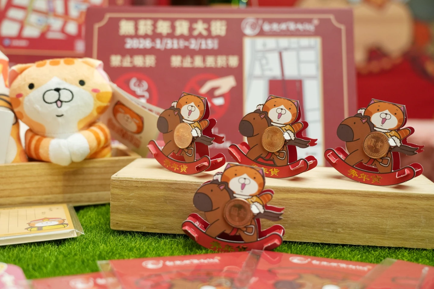 而今年年貨大街主角「白爛貓」更騎上搖搖馬,化身為「2026台北年貨大街」限定「馬上有錢 喵」,並由白爛貓手持象徵好運的一元硬幣,可以透過參與永樂廣場「馬套成功」互動遊戲、首長走街拜年活動,將這份可愛開運小物帶回家;此外,活動更串聯「來台北有購嗨」抽獎活動,民眾採買年貨滿200元,只需登錄發票,即有機會抽中千萬大獎及多項好禮。