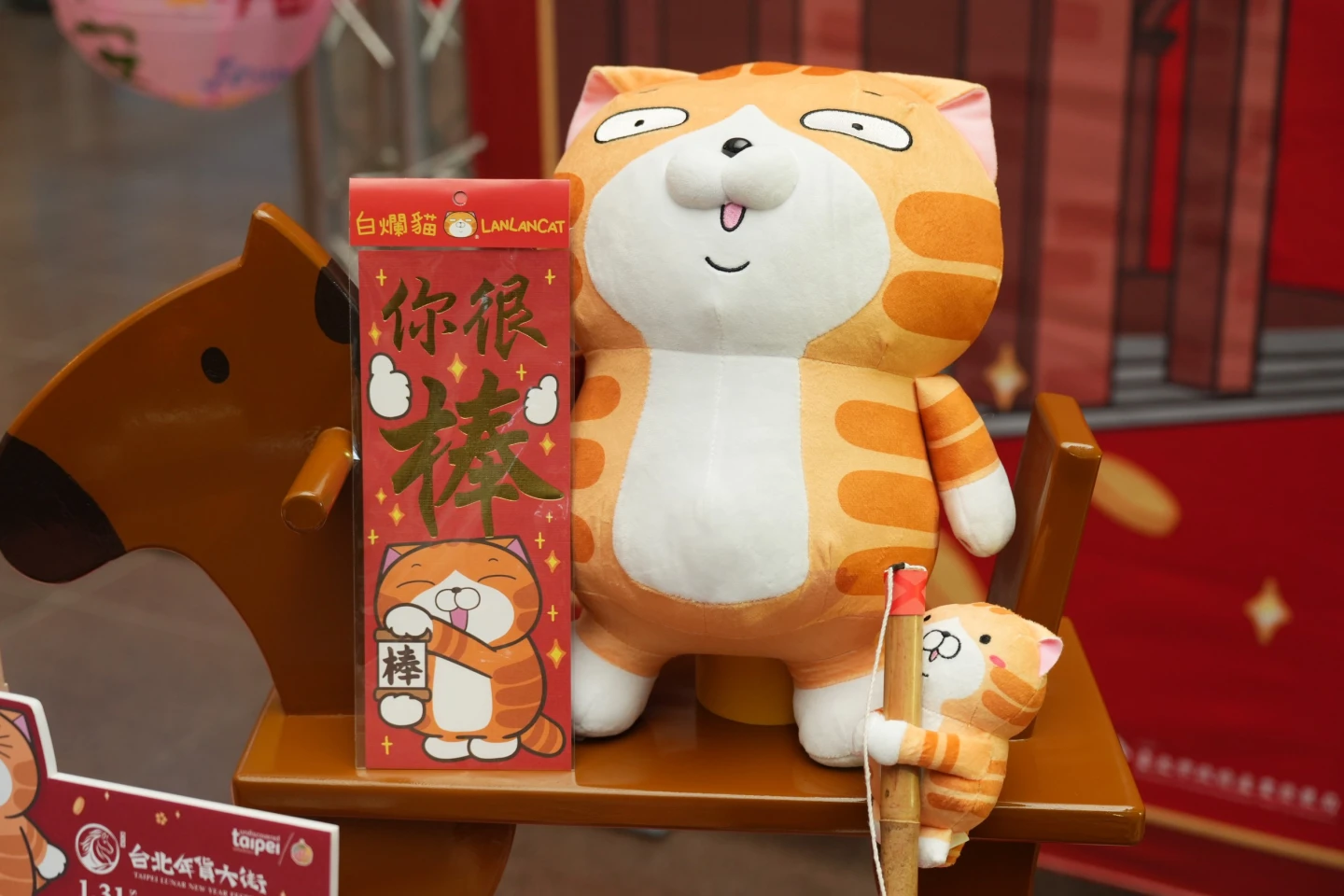 今年度攜手「白爛貓」IP於迪化街商圈設置特色迎賓牌樓與IP主題巨偶,包含「年年有魚白爛貓」及「搖搖馬白爛貓家族」。其中,「搖搖馬白爛貓家族」於永樂廣場地面設置高達5公尺的大型白爛貓氣偶,並於氣偶下裝飾象徵財富的金元寶;在永樂市場外牆及屋頂還有家族成員「麻糬」及「臭跩貓」氣偶。
