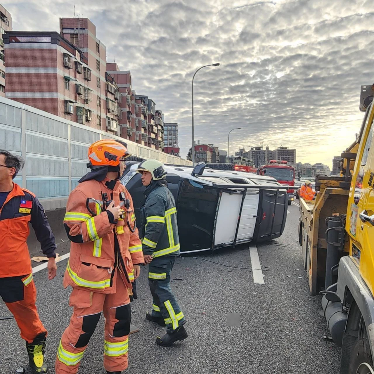 國一北上12.5k車禍!追撞外側事故車 釀1車側覆母子輕傷送醫急救