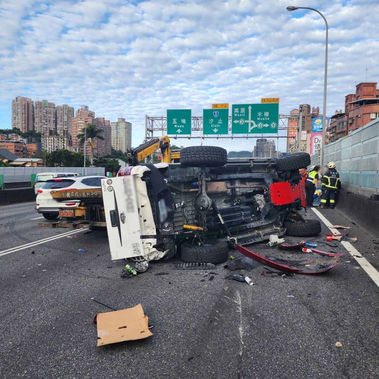 據悉,38歲闕姓男子,因車輛故障逆向停於國道一號高速公路北上12.5公里外線車道待援。後方33歲管姓男子所駕駛汽車行經該路段,疑未注意車前狀況,從後追撞闕男汽車,導致闕男人車往前衝去側翻外側車道。闕男及其30歲妻子、2歲兒子一度受困車內。