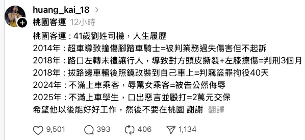 網怒揭劉姓司機「驚人黑歷史」:10年前就開學生專車、曾辱罵乘客