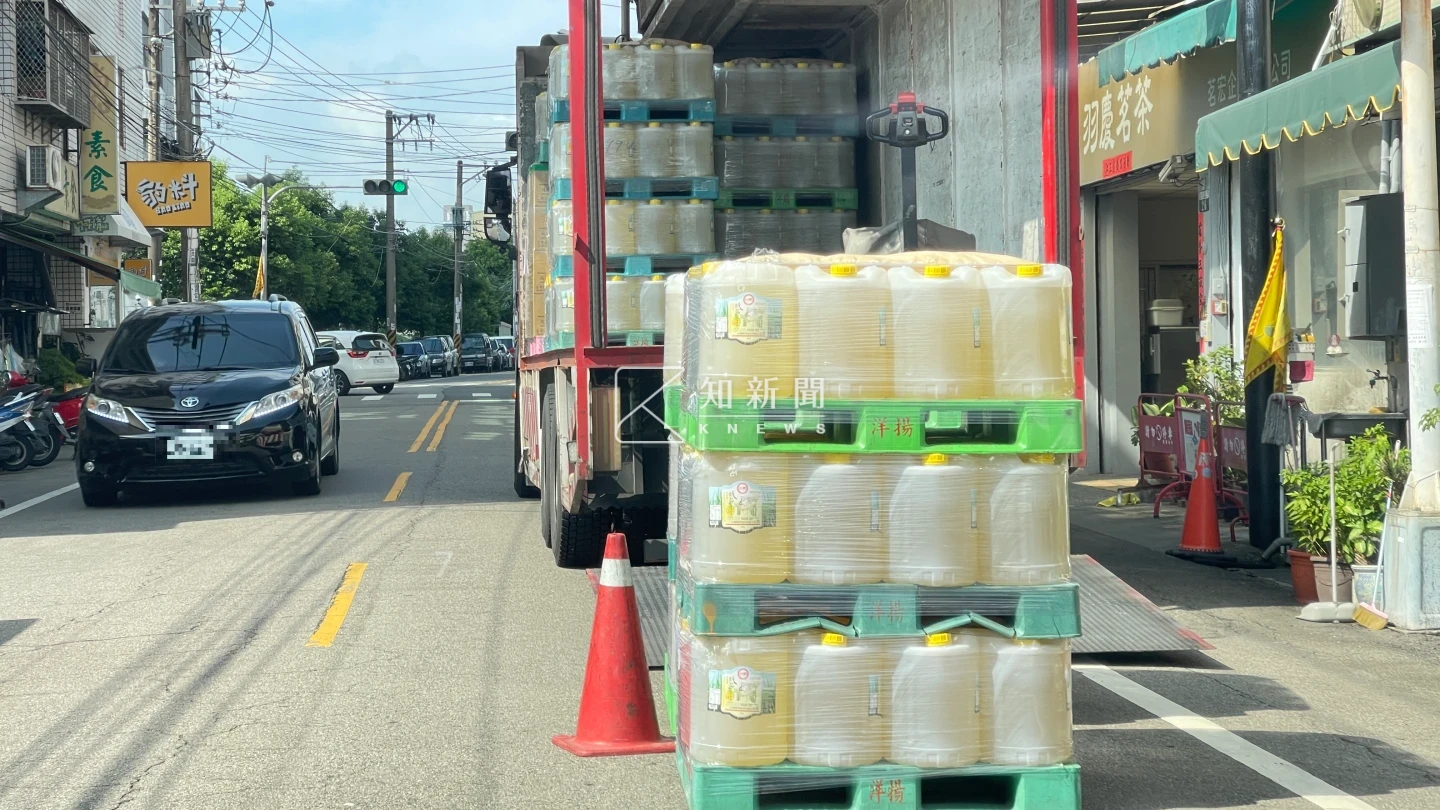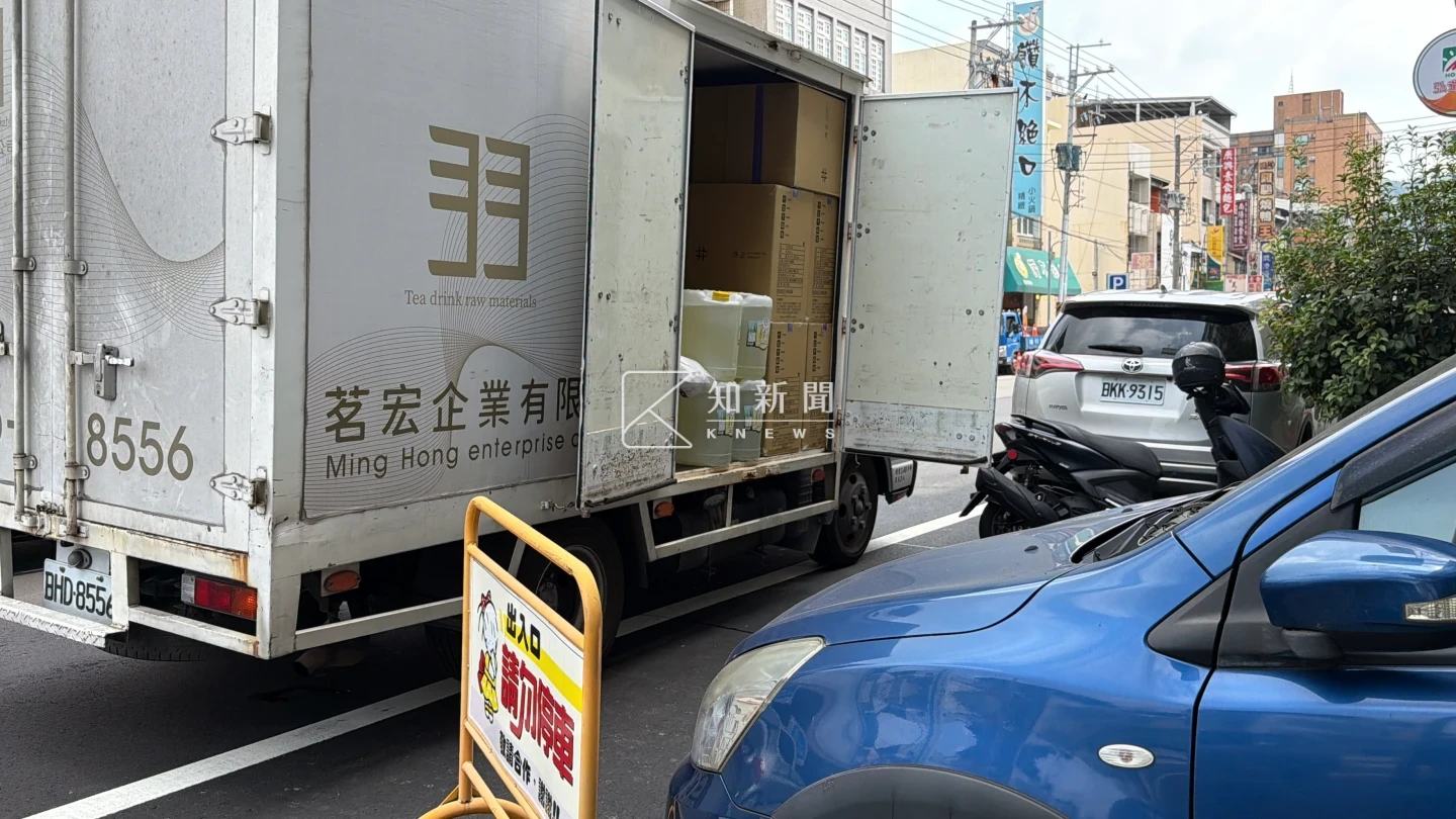 為確認相關原物料是否實際供應得正,《知新聞》進一步尾隨茗宏貨車,實際目擊車輛開往得正豐原一家門市,司機將從停車場運出的蔗糖液等原物料,逐一搬入店內,顯示這批原料確實送入得正。
