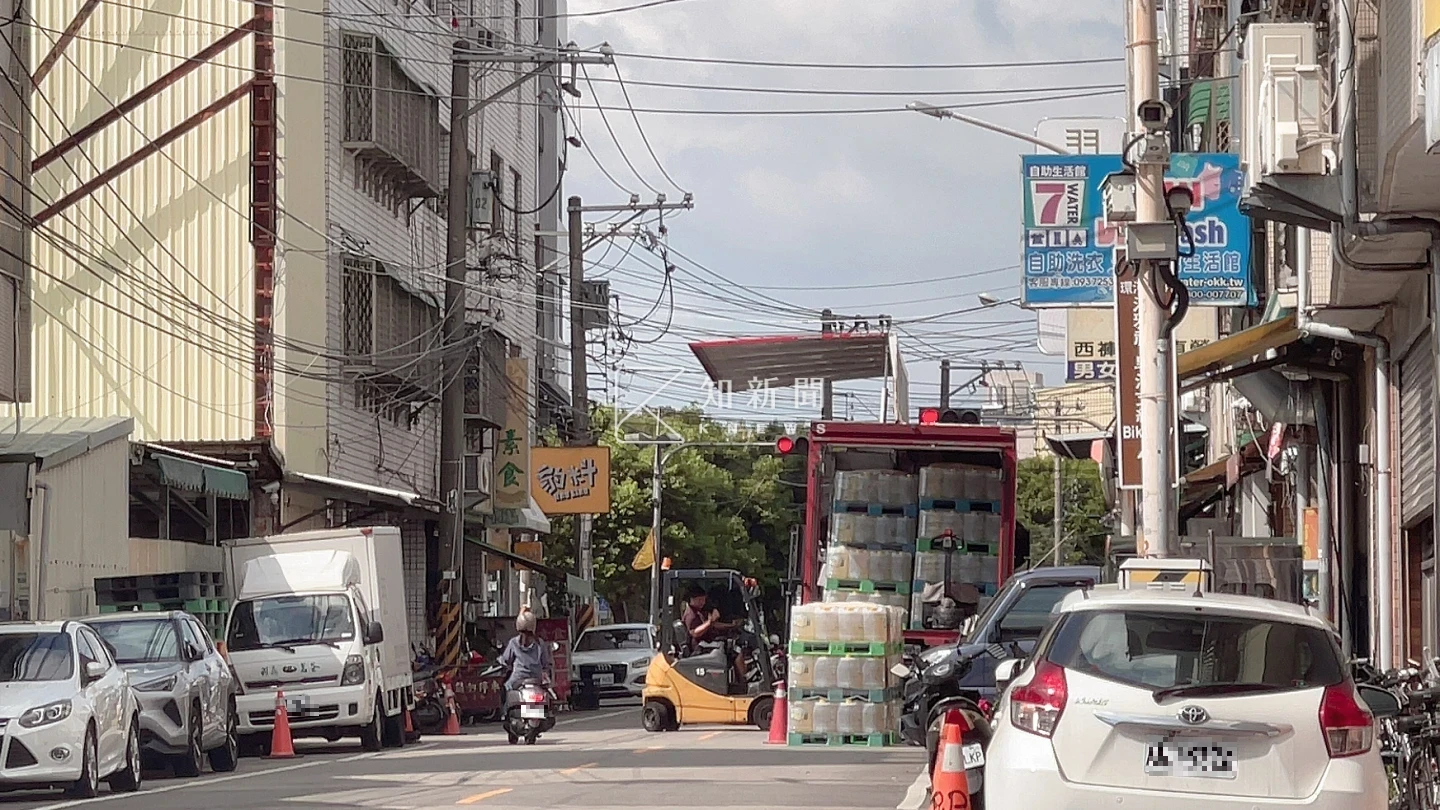 《知新聞》查詢茗宏於人力銀行的公開徵才資訊,網頁註明該公司位於台中潭子區,為茶葉、糖類、飲料、食品、乳品及罐頭批發業。記者為查證爆料內容,自2025年9月起,連續5個月多次前往「茗宏」現址勘查,屢次目擊大型貨車直接佔據馬路車道卸貨,再以推車或堆高機將一箱箱原料運入停車場內堆放。
