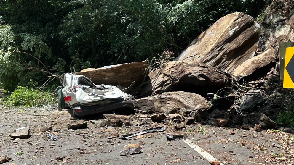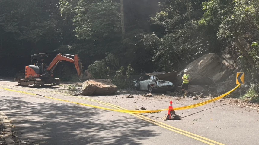 新北烏來落石崩落壓毀休旅車