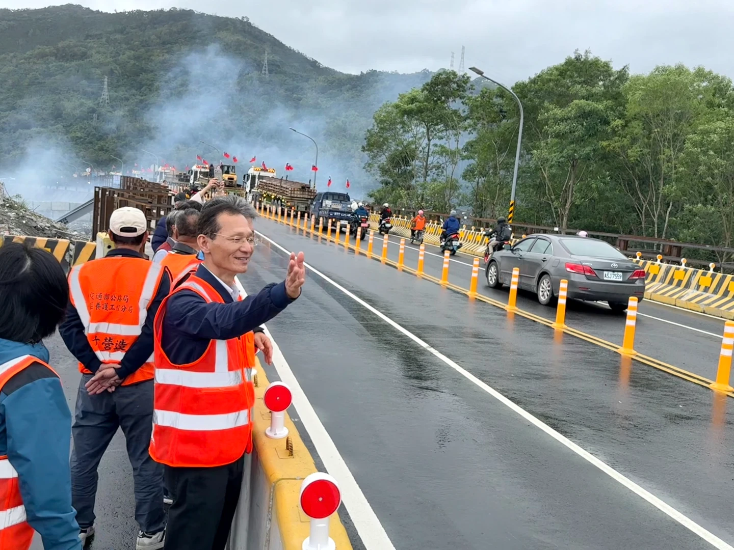 公路局局長林福山今(1/1)親自到場慰勉所屬東分局同仁及廠商,並視察鋼便橋通車前的交通安全檢查。上午10時鋼便橋準時通車,在場鄉親及用路人皆給予施工團隊高度肯定及鼓勵。