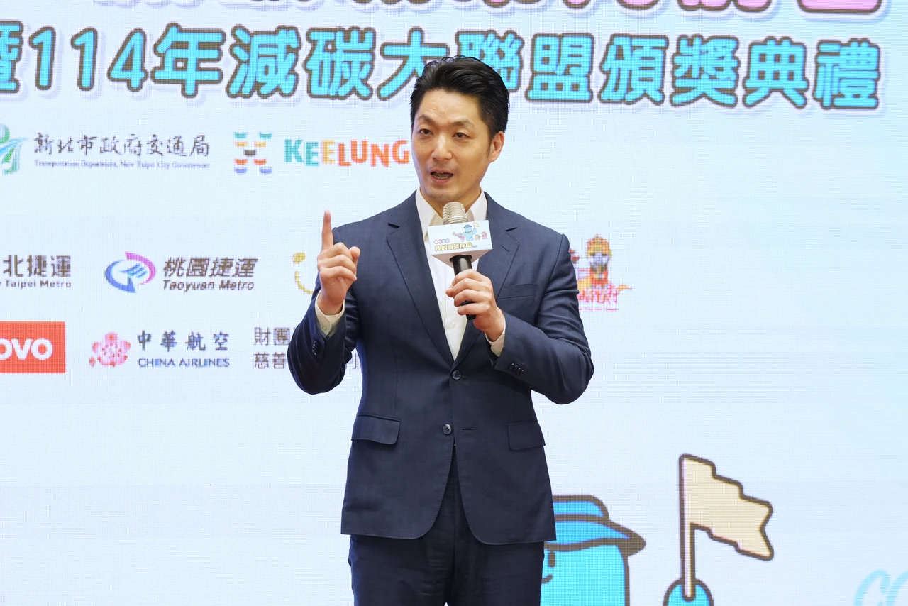 蔣萬安15日和謝國樑、劉和然、蘇俊賓一同出席基北北桃「我的減碳存摺2.0」頒獎記者會,而「我的減碳存摺2.0」APP自115年5月1日起納入步行累積減碳量功能,只要累積到指定門檻,就可以登錄回饋、獲得超值好禮。另外,為感謝基北北桃參與減碳大聯盟的單位及民間企業,今特地頒發114年基北北桃四市總減碳量及人均減碳量前五名的政府機關、企業及學校。
