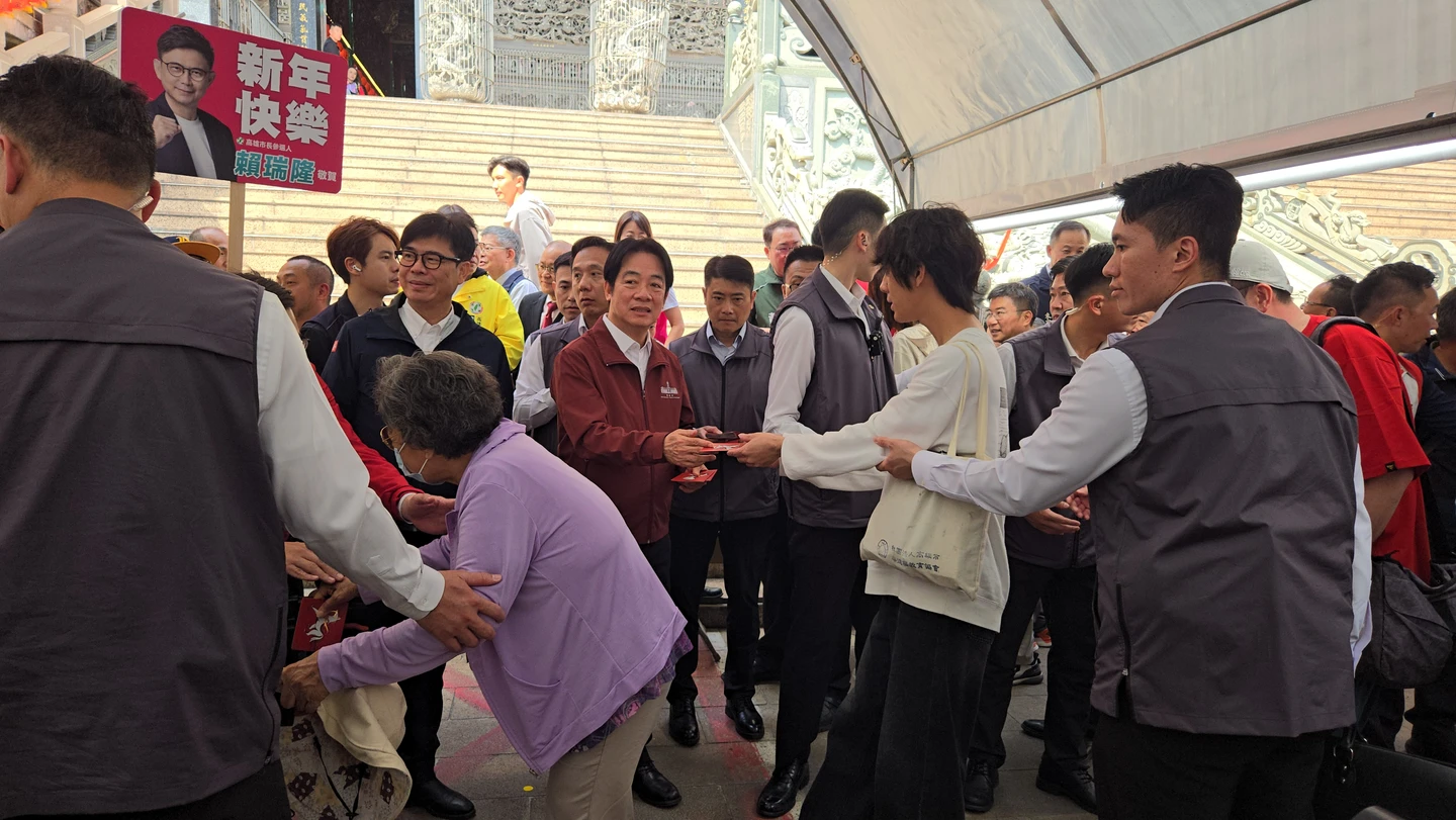 賴清德上午由陳其邁陪同,先後前往岡山壽天宮與前鎮鎮南宮參香、發放馬年福袋。陳其邁致詞時說,剛才總統下車就問他「是不是比較輕鬆?」他回說,當然比較輕鬆,因為接下來賴瑞隆委員就要「承擔重擔」。