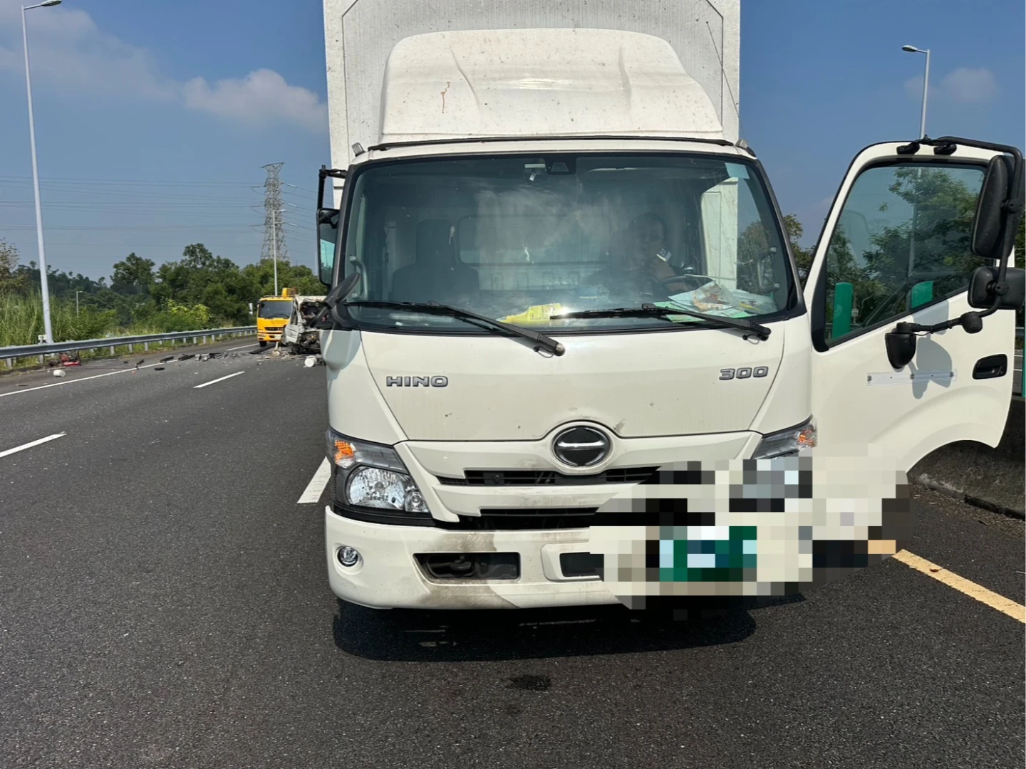 國道第八大隊調查,盧姓男子(29歲)駕駛今天小貨車載著1名菲律賓籍外籍移工(38歲)上工,上午10時20分左右行經國道3號南向291.3公里處外側車道,疑未注意前方因施工車流回堵,高速追撞由40歲李姓男子駕駛的大貨車車尾。