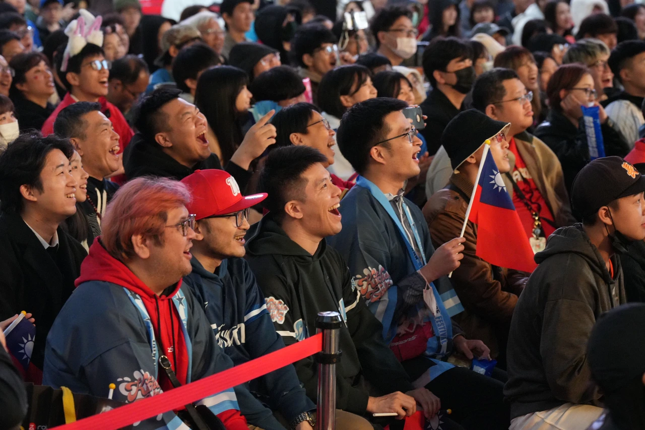 另一組球迷李小姐與曾小姐,也在傍晚一起來到香堤大道看球賽,身為宋晟睿粉絲的曾小姐直呼:「昨天他很帥,今天也可以很帥,大家加油,一定要贏日本!」談到昨天看到陳傑憲受傷,李小姐坦言,覺得很心疼,「看到他被打很想哭。」今天兩位也特別穿了短版球衣,露出小蠻腰來到現場加油,但笑說因為天氣太冷,穿外套藏起來了。