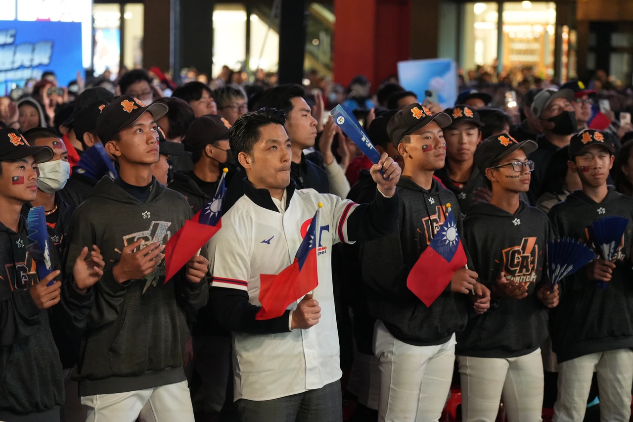 【記者劉沛妘/台北報導】中華隊在世界棒球經典賽(WBC)第二戰迎戰強敵日本隊,今晚6點開打,全民開始集氣。《知新聞》直擊台北信義區香堤大道直播派對現場,人潮相當熱鬧,許多球迷都帶上應援旗子、球衣等來為中華隊集氣,還有一群台大學生下課就來到信義區,表示今晚特別帶了日本零食來觀賽,要「吃爆日本」。