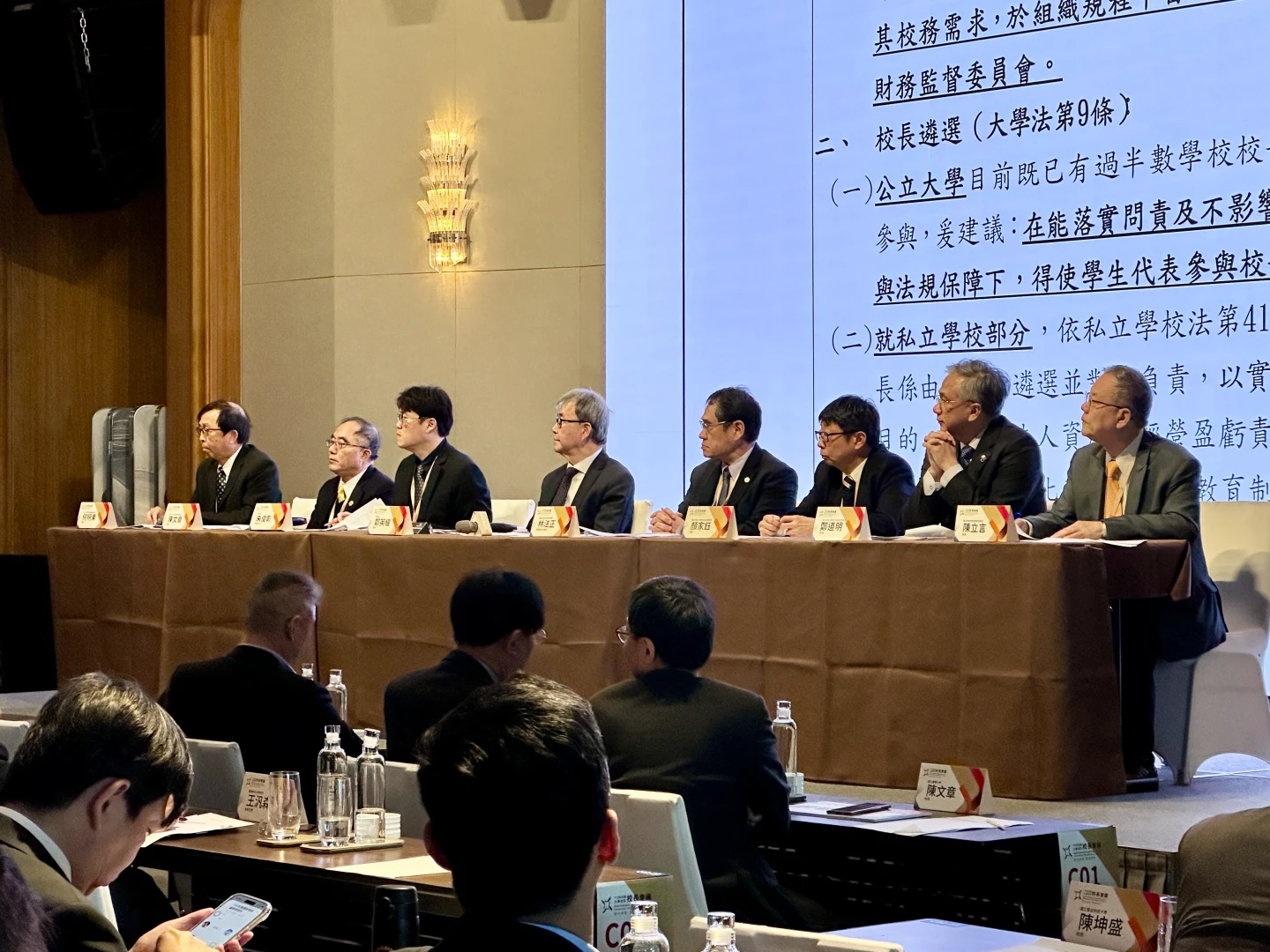 全國大學校長會議1/22到1/23舉行,會中國立大學校院協會、國立科大校院協會、私立大學校院協進會及私立科大校院協進會共同提案,針對《大學法》修法提出意見,指出校務會議學生代表比例應漸進式增加,可調整為1/10至1/8,另外,公立大學同意學生代表參與校長遴選,私校則認為,校長由董事會遴選並對其負責,應該讓各校自主決定是否讓學生參與遴選。