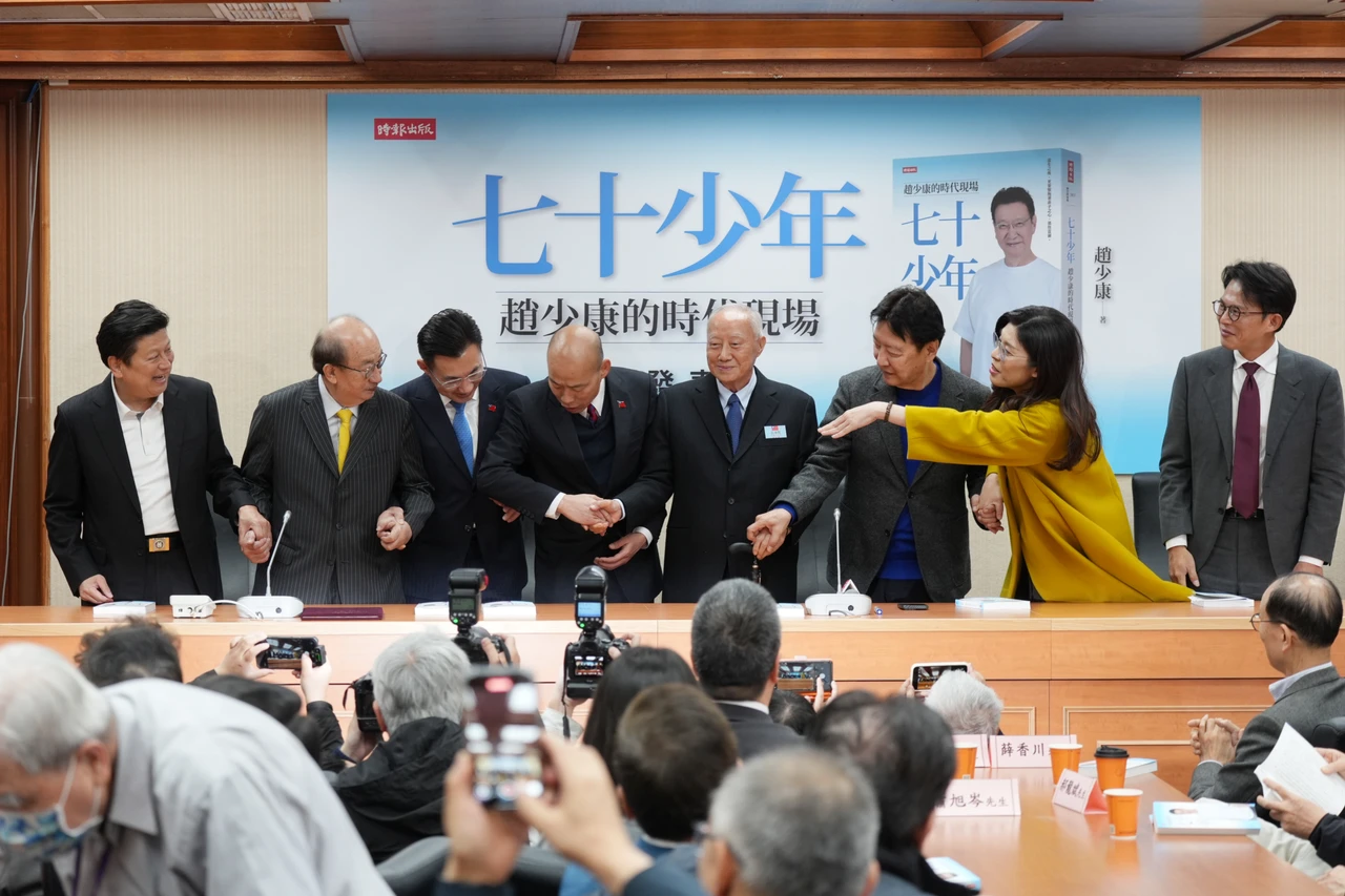趙少康今在立法院舉行新書發表會,現場藍綠白大咖齊聚,包括立法院長韓國瑜、副院長江啟臣、國民黨主席鄭麗文、民眾黨主席黃國昌、民進黨團總召柯建銘、考試院前院長關中、台北市前市長郝龍斌、新北市前副市長謝政達、「電視教父」王偉忠、作家張大春以及多名藍白立委、台北市議員都到場支持。