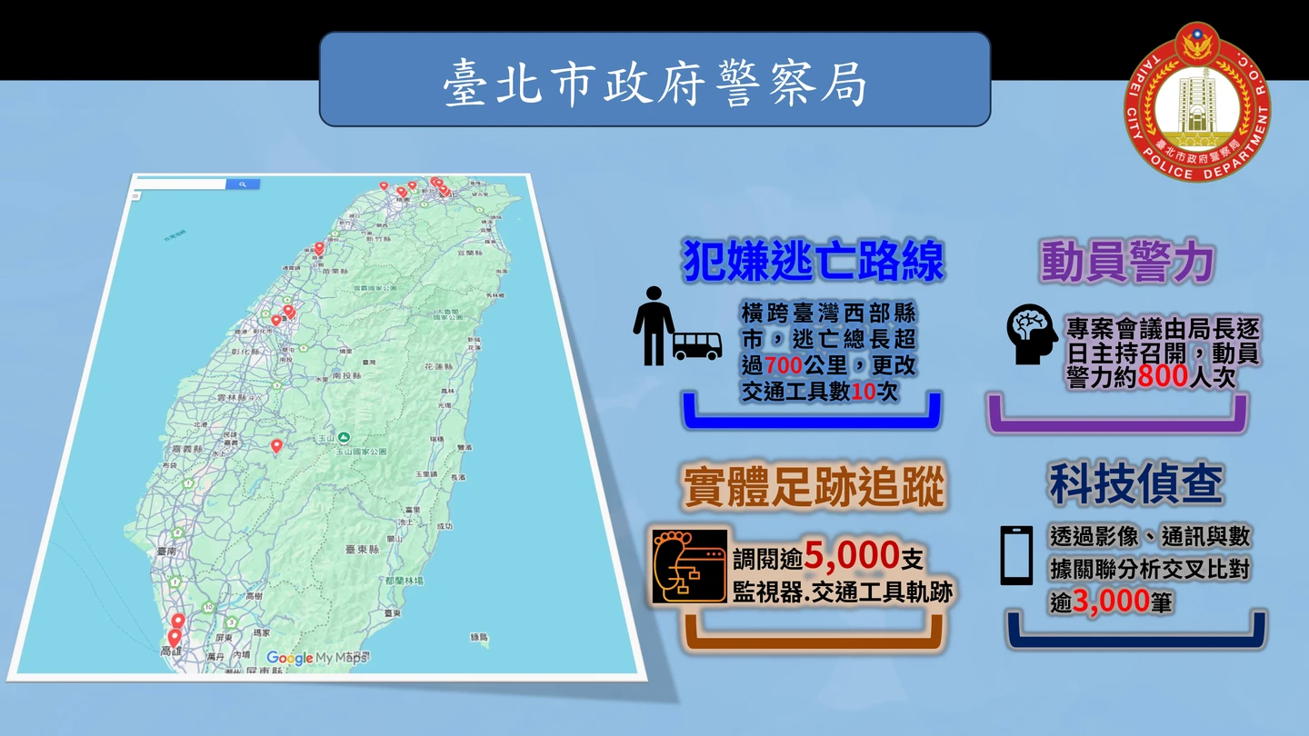 警方和刑大成立專案小組展開查緝,同步報請檢察官指揮偵辦,發現槍手十分狡詐,除提前到場勘查地形,犯案後更以變裝、步行及搭乘多元計程車等方式製造斷點,躲避警方查緝。