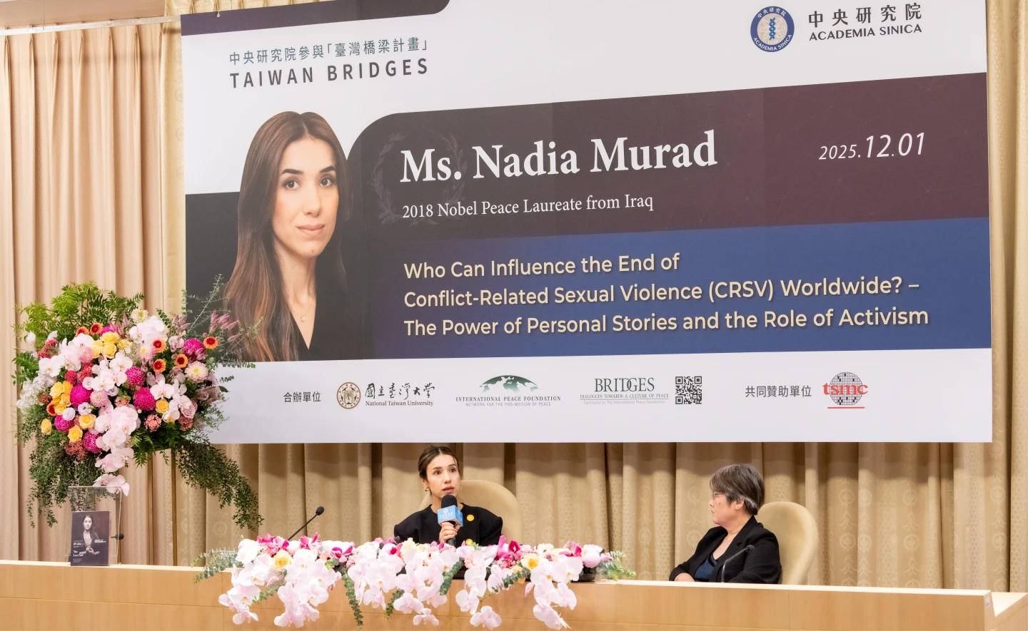 中研院表示,講座中,穆拉德與中山大學社會科學院特聘教授陳美華對談,她分享自身遭遇與重生歷程,並表示衝突相關性暴力不只是個人遭遇,更牽涉國際法、政治局勢、族群身分與社會文化等層面,若要真正終止此類暴行,政府與國際機構必須強化法律體系與追訴機制,讓加害者得以依法究責,同時,非政府組織與地方社群,在第一線協助倖存者復原,更是關鍵且不可或缺的。