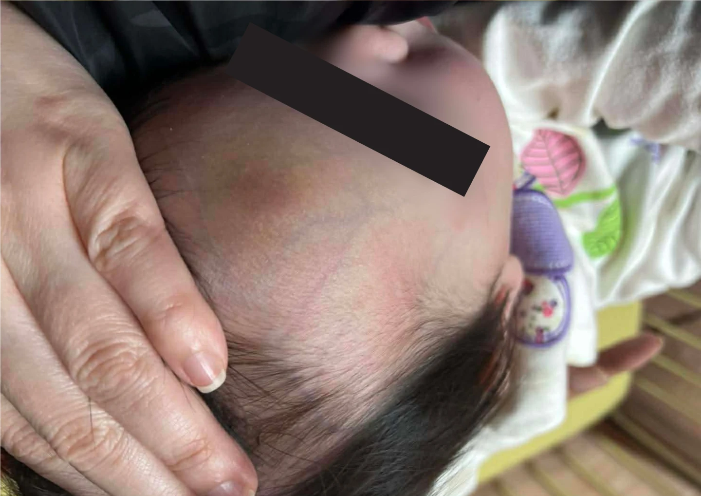 本月18日,男童母親收到社工傳來的數張照片,社工透過電話告知,小孩獲得良好照護,請家長不用擔心。沒想到男童母親仔細查看照片,驚見其中一張小孩照片額頭竟紅腫,詢問社工後,社工回稱,應該是被蚊子叮咬,並指也可能是保母抱小孩的時候,額頭壓到牛仔衣縫線造成。