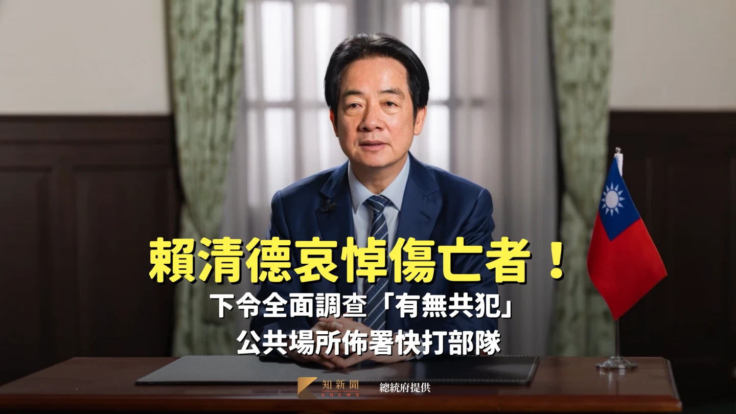 賴清德哀悼傷亡者!下令全面調查「有無共犯」 公共場所佈署快打部隊