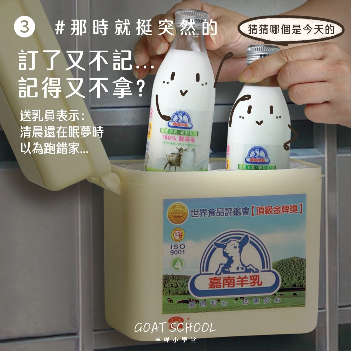 嘉南羊乳去年起在社群暴紅,「羊編」幽默又風趣的回應和圖片暴紅,更引發許多人童年回憶,紛紛回訂嘉南羊乳,還有大學生拍下宿舍一整排羊乳保溫箱畫面。