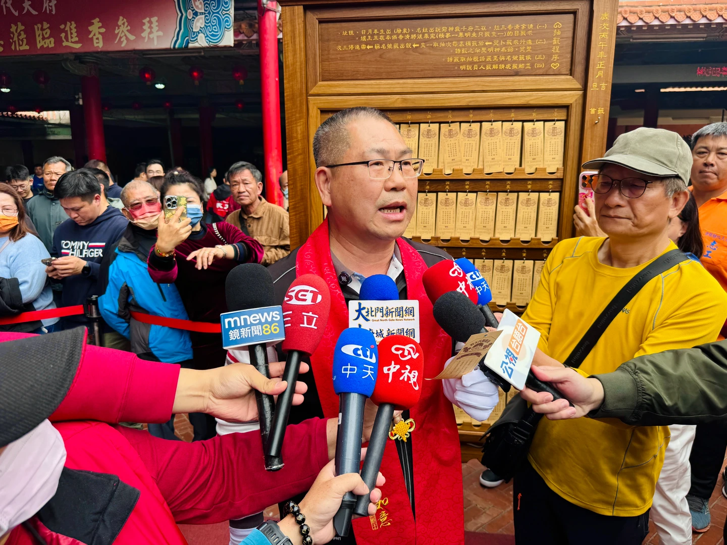 侯賢名說,廟方今年元旦抽出吉祥字「旺」,對照大年初一國運籤,可說是十分吻合,尤其台灣去年在關稅戰中仍表現亮眼,世界很多專家對台灣經濟成長有十足信心,這支籤更顯示「今年比去年更好」,不只經濟繁榮,民生、國家運勢都會很好。