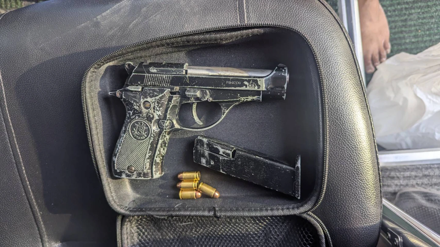 台中市刑大偵五隊接獲情資,立即展開追查、跟監及蒐證,全面掌握洪嫌行蹤,確認時機成熟後,順利將洪嫌查緝到案,並在洪男駕駛的遊覽車上,起獲改造手槍1把、子彈4顆,以及毒品安非他命2.8公克、吸食器。其中扣案的改造手槍經送刑事局鑑定,確認為仿製貝瑞塔手槍,擊發功能正常,具備強大殺傷力。