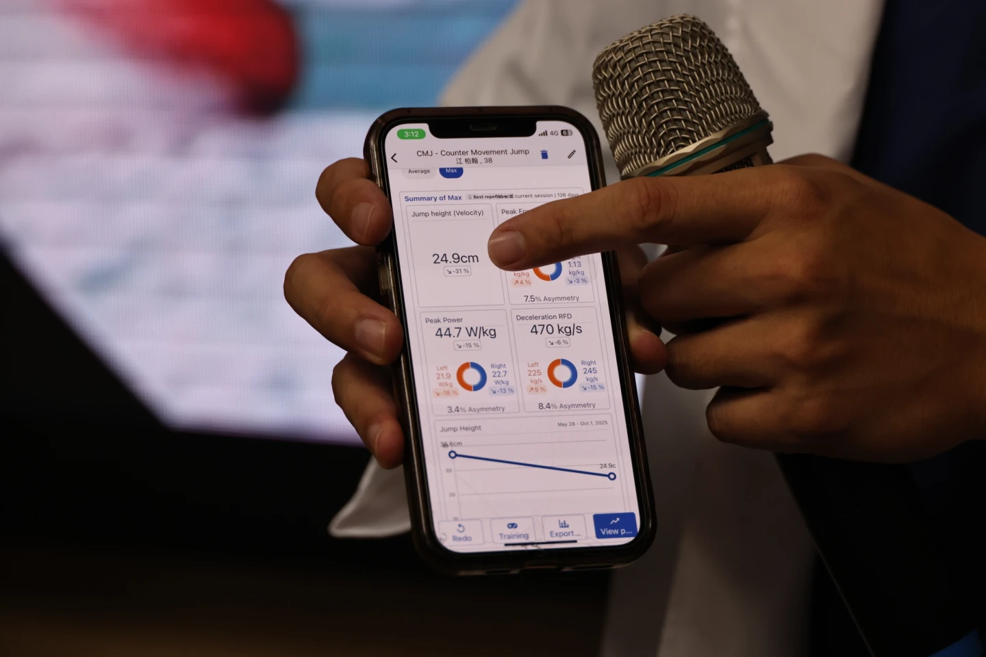 江先生去年評估時發現雙髖關節活動度不足,以及核心臀肌啟動不足,經過治療師提點,並調整訓練菜單,今年的季後評估已經看見進步。