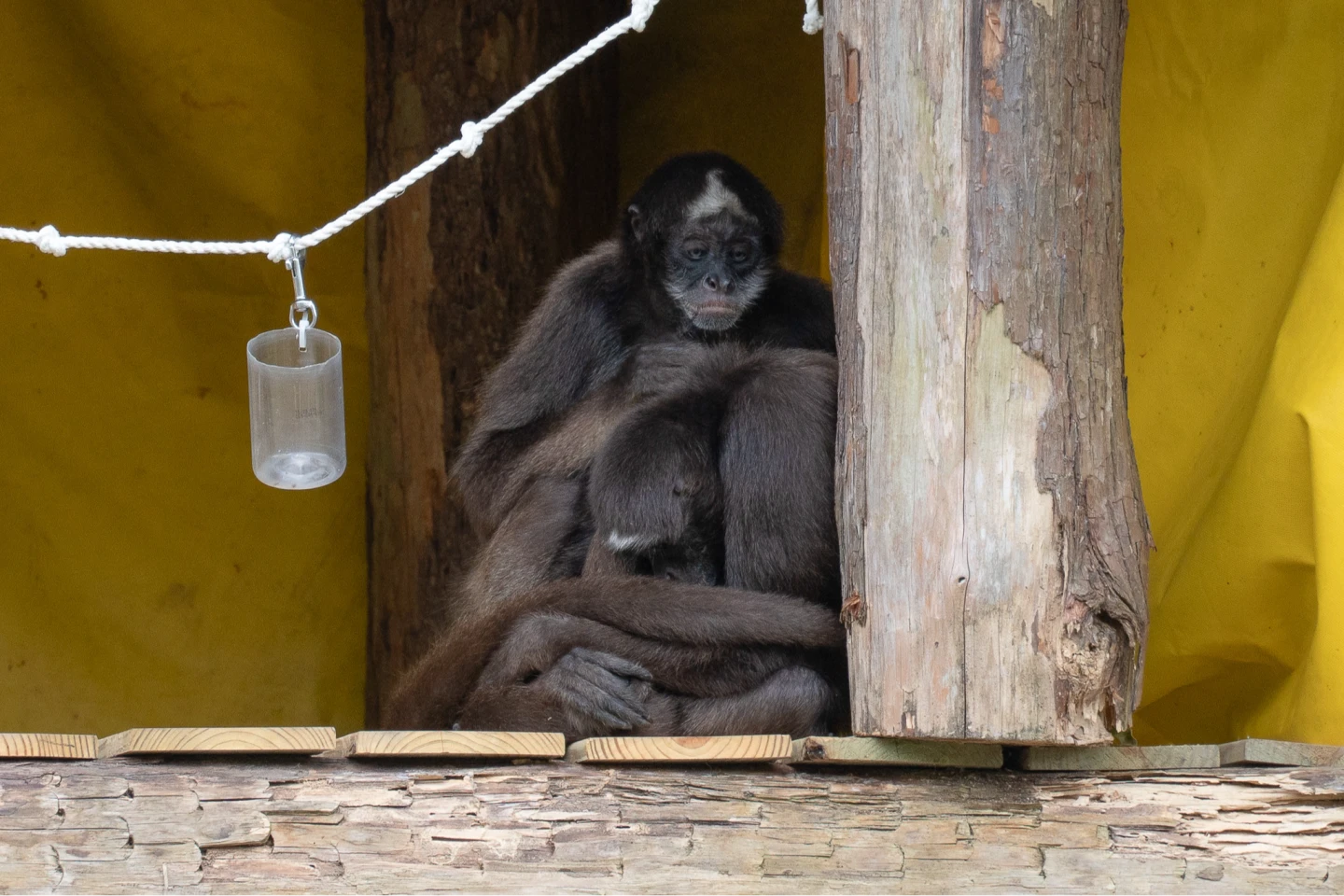動物園禦寒萌樣曝!猩猩披麻袋「蜘蛛猴團團抱」取暖 圓仔擁「1特性」享受度假好天氣