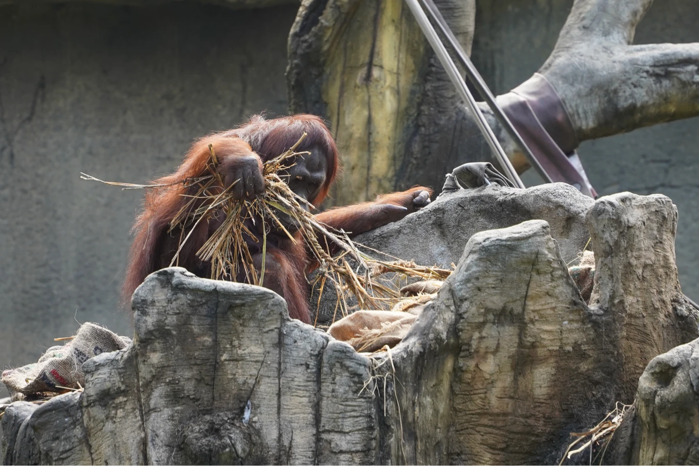例如,靈長類的紅毛猩猩雖然有著長毛,卻是熱帶雨林相對不適應寒冷的動物,因此園內會提供地熱、乾草和麻布袋。紅毛猩猩會使用乾草鋪床,布置一個舒適保暖的位子休息,或把麻布袋當作坐墊窩在電暖器出風口享受熱風。在冬季經常有機會看到紅毛猩猩在地面移動或爬上棲架時手腳並用地帶上麻布袋,順手披著上麻布袋走動的模樣,好似冬季限定的保暖大衣時尚走秀。