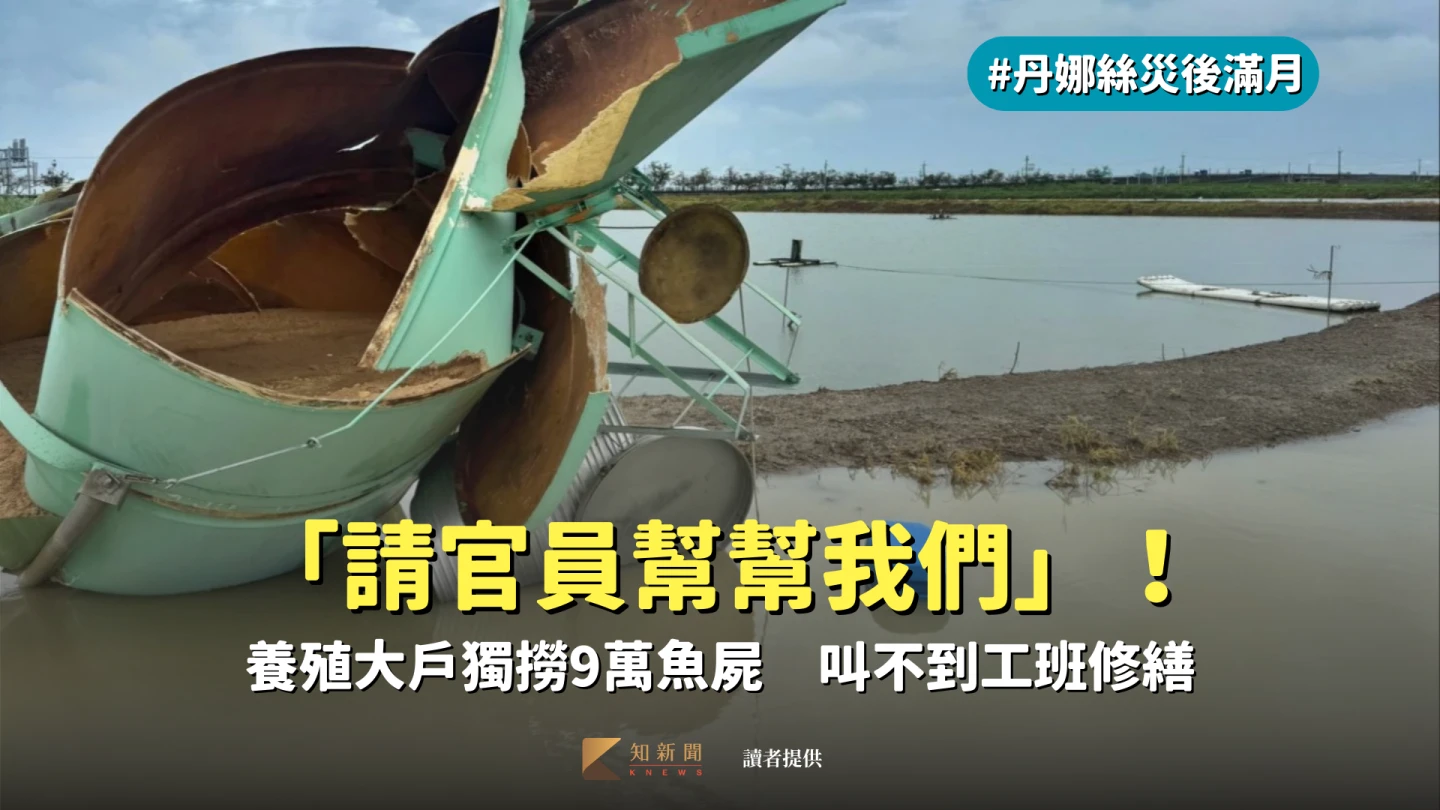 【記者王志弘/台南報導】丹娜絲颱風遠離1個月,台南有養殖大戶慘賠上千萬元,9萬多尾虱目魚、台灣鯛暴斃,至今仍孤立無援,叫不到工班修繕,大型垃圾也無人清運,彷彿被政府遺忘。他不解嘉義縣政府第一時間就下鄉援助,台南市政府災害應變卻慢好幾拍,至今沒有一通關心電話,連補助申請也是「一國二制」太繁瑣,不禁感嘆「請官員來魚塭看看、幫幫我們。」