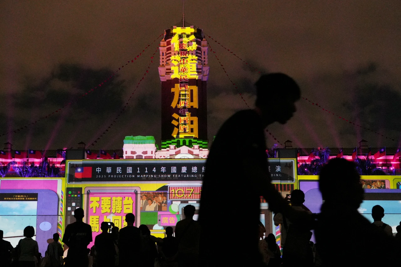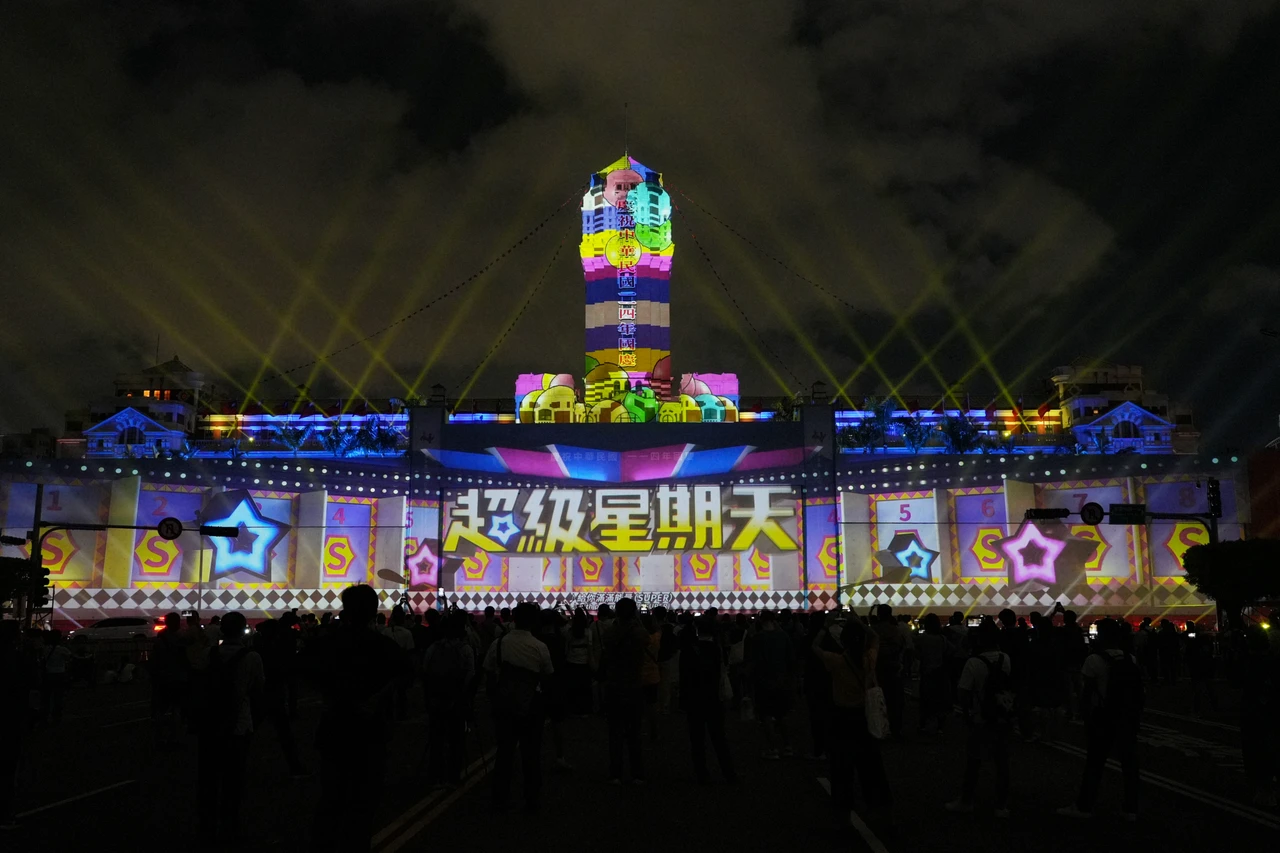 賴清德及立法院長韓國瑜、總統府秘書長潘孟安、文化部長李遠、文化總會副會長江春男及秘書長李厚慶、跨黨派立委等多人,今晚共同出席國慶光雕展點燈儀式。