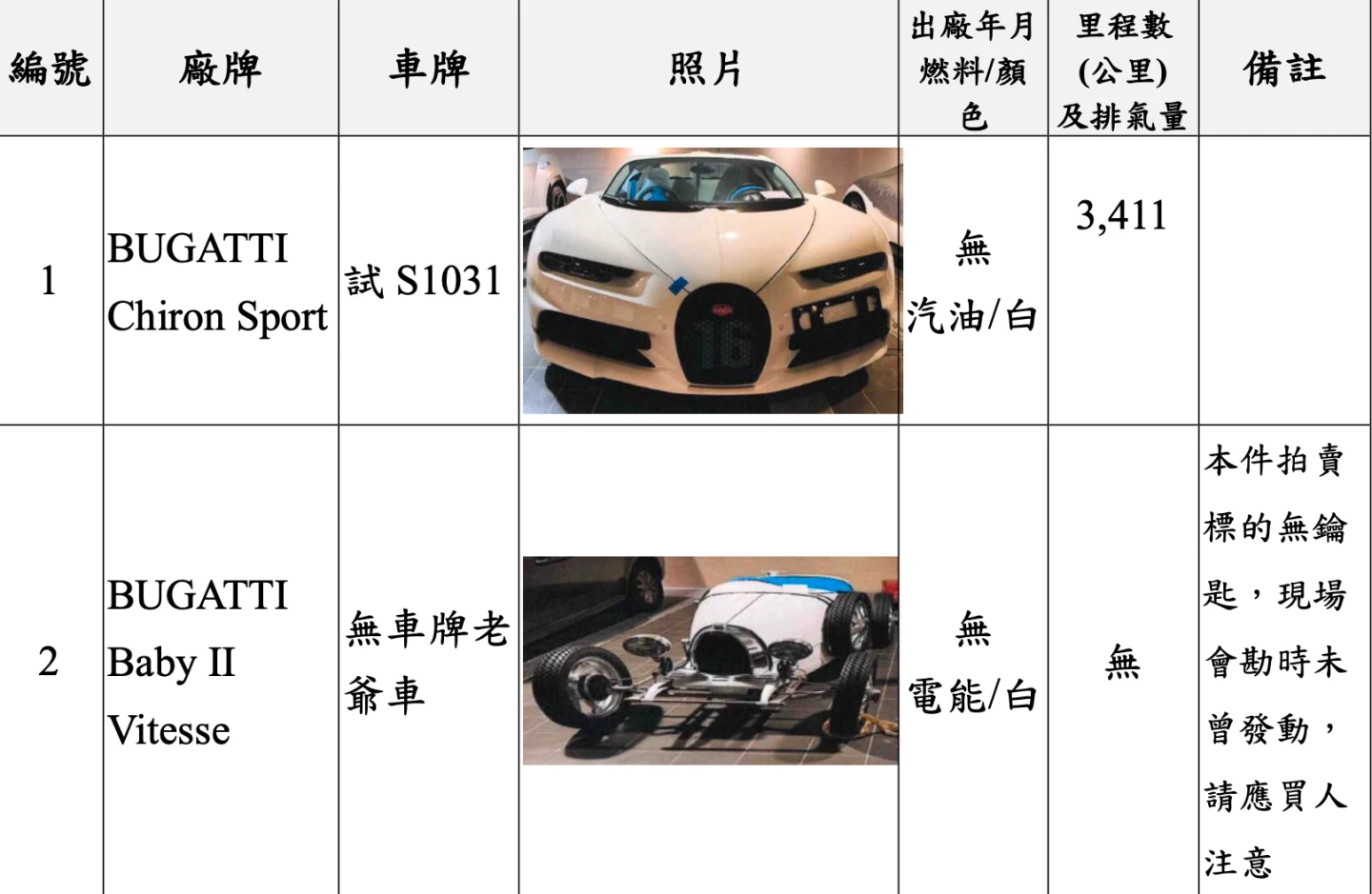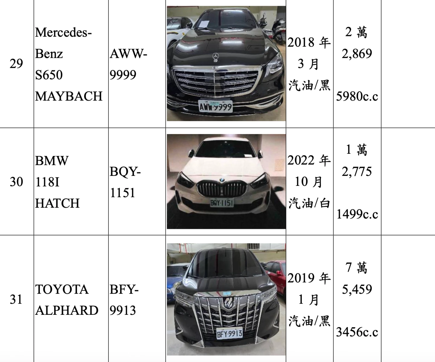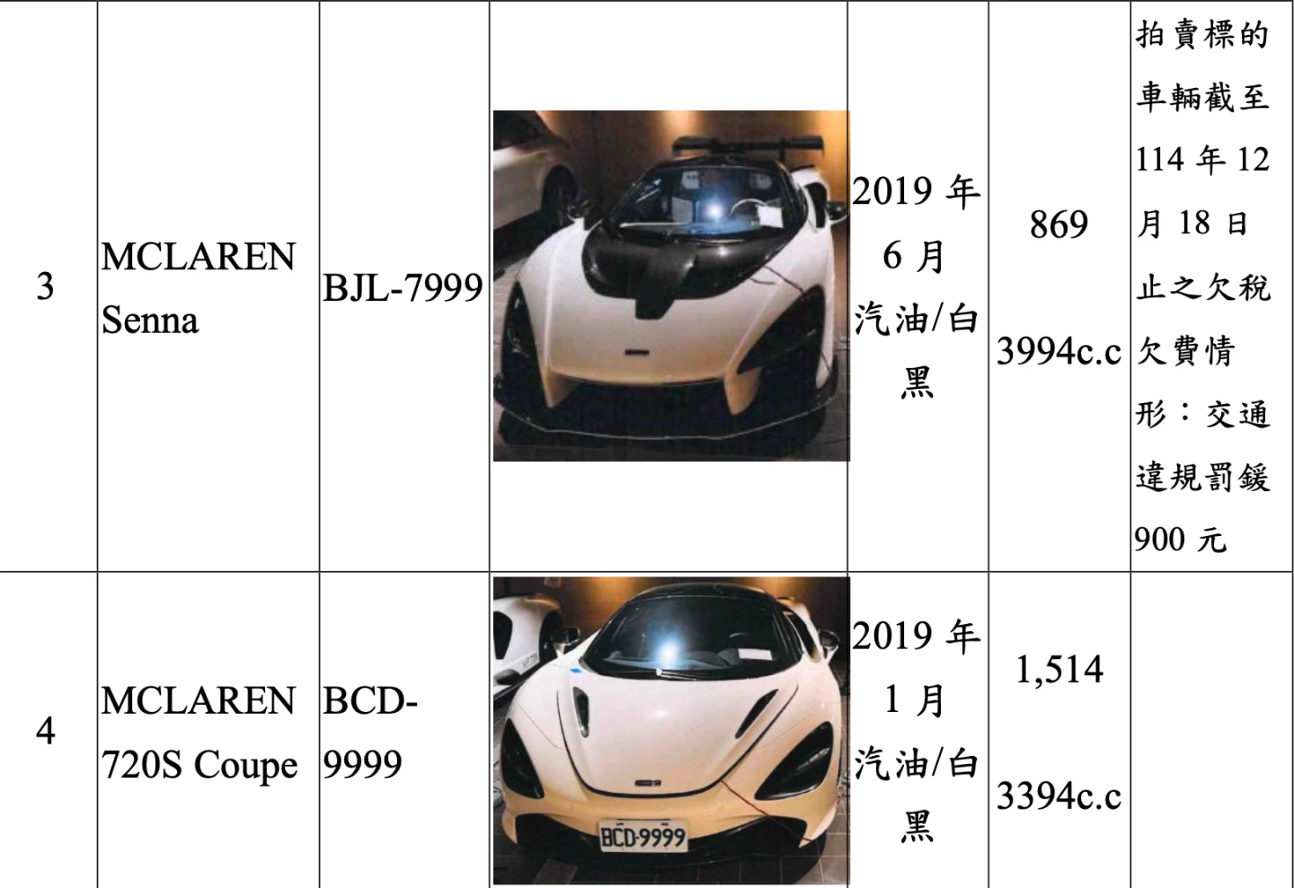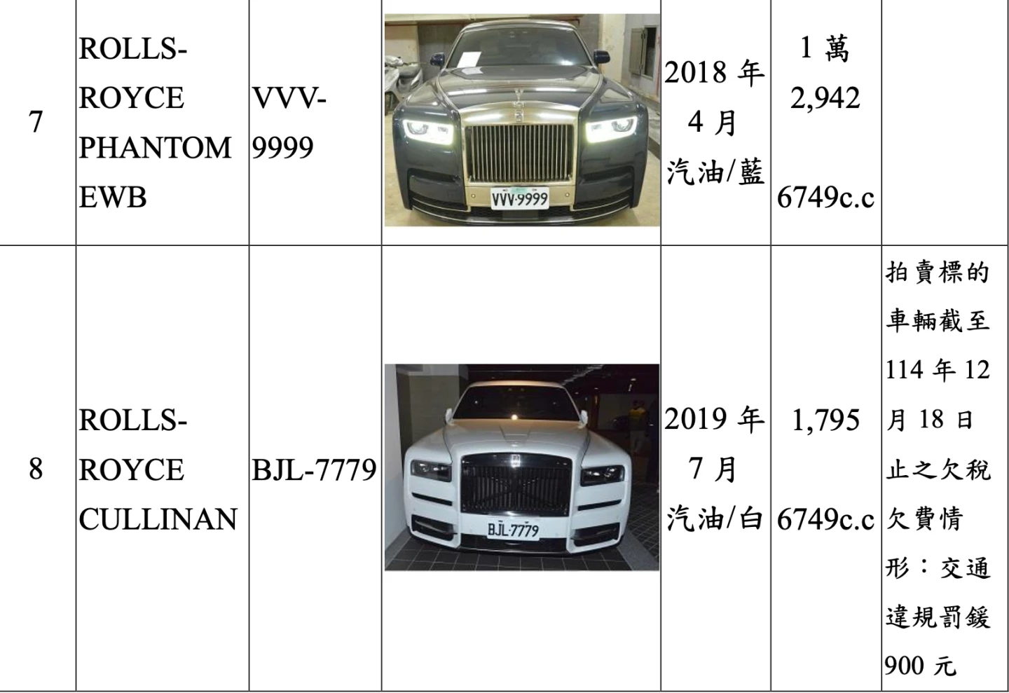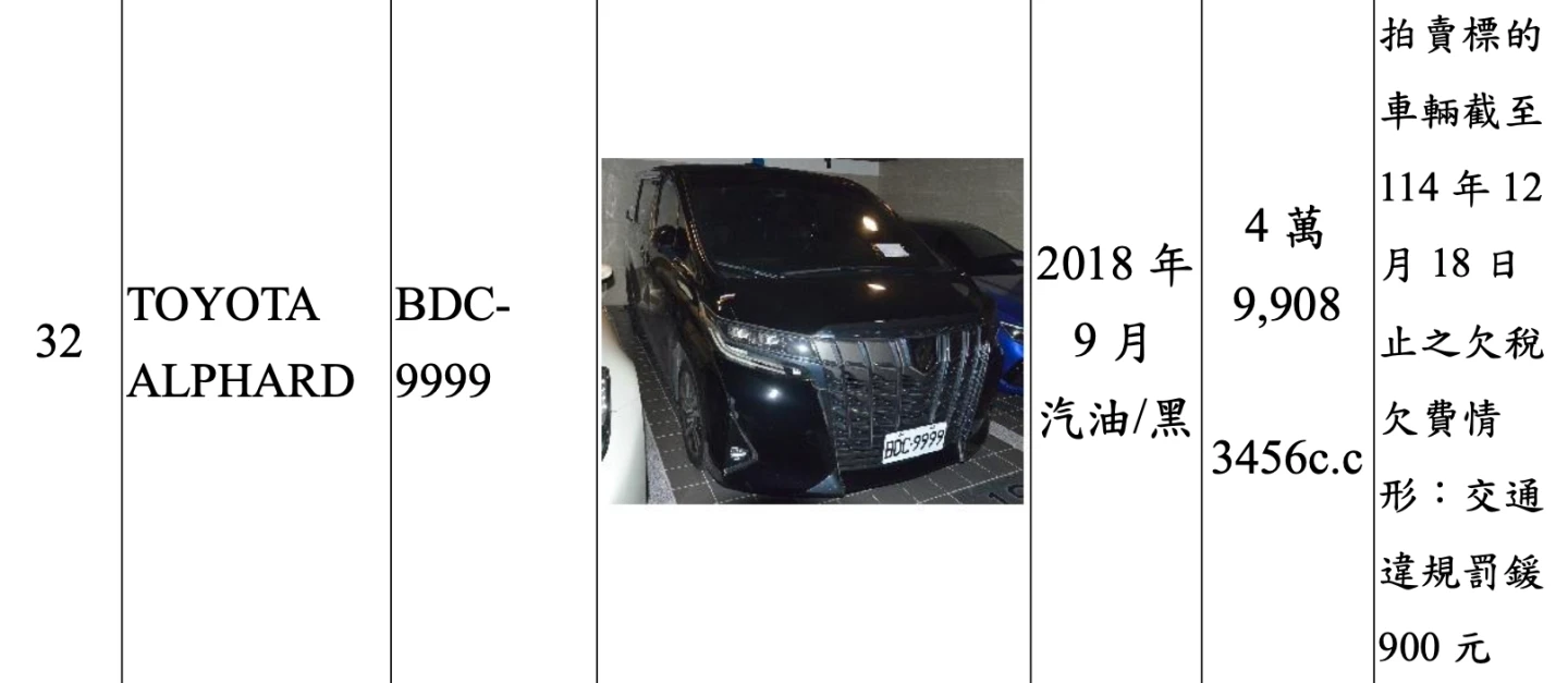 台子集團遭拍賣豪車。取自行政執行署台北分署網站