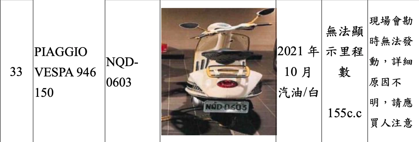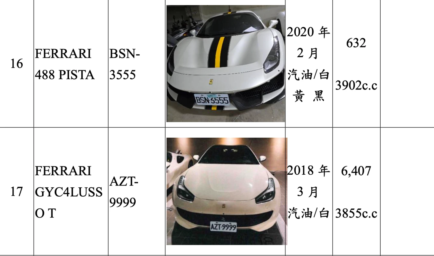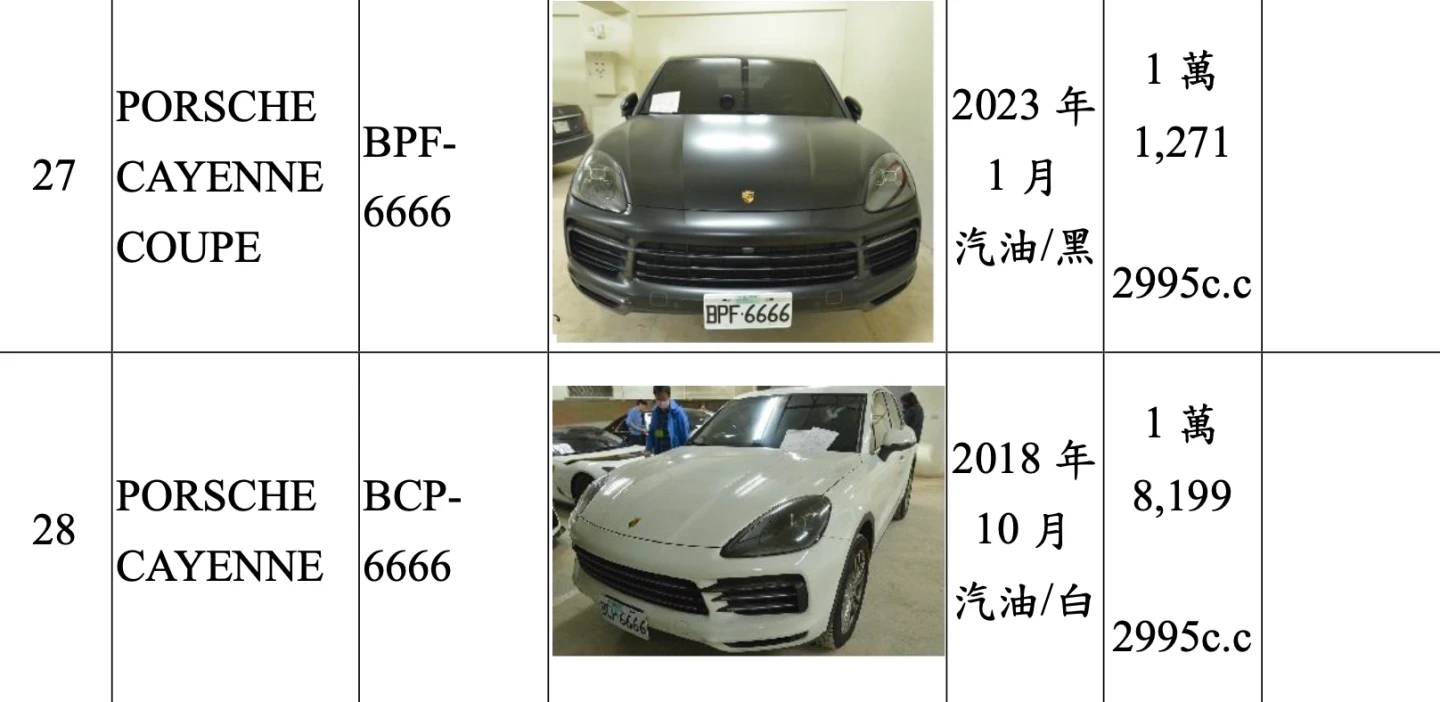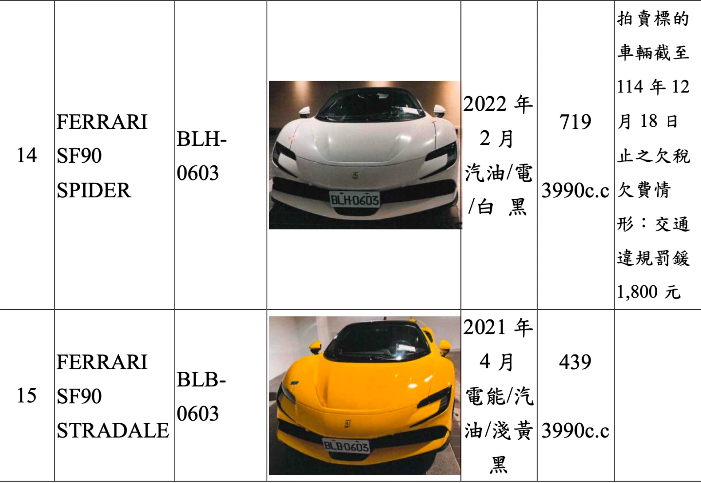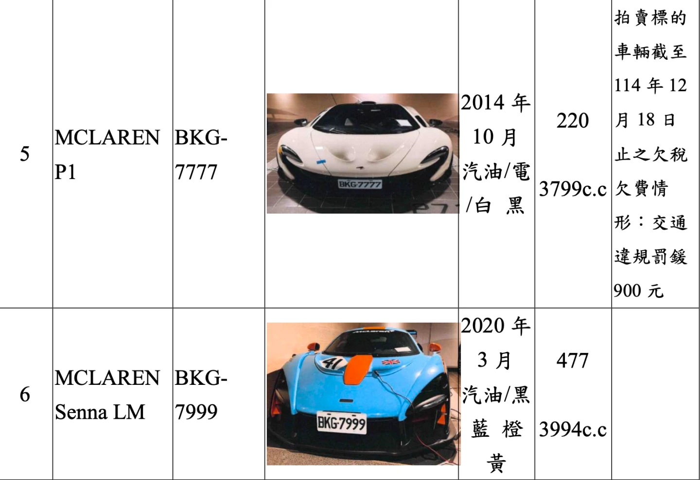 台子集團遭拍賣豪車。取自行政執行署台北分署網站