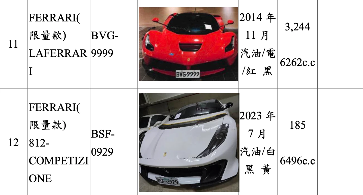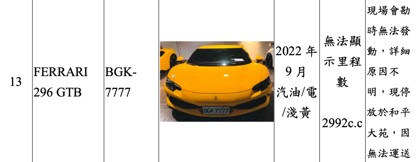 太子集團超跑將在警專集合場進行法拍。台北地檢署提供 zoomin