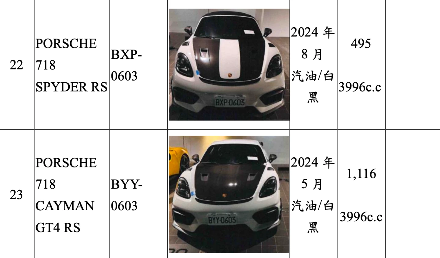 為保全扣押物現有價值,精品標已於2月3日由行政執行署士林分署順利完成首場拍賣,為避免扣案名車因長期停放導致價值減損,北檢囑託行政執行署台北分署辦理變價拍賣。