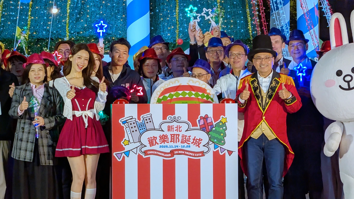 【記者林志青/新北報導】2025新北歡樂耶誕城今晚熱鬧登場,新北市政府安排精彩的「耶誕馬戲開城SHOW」揭開序幕,融合華麗燈光與雜耍特技,營造繽紛歡樂的節慶氛圍。富邦啦啦隊女神李雅英與LINE FRIENDS兔兔也現身會場,新北市長侯友宜隨後與眾人啟動點燈儀式後,宣布為期45天的耶誕系列活動正式開始。