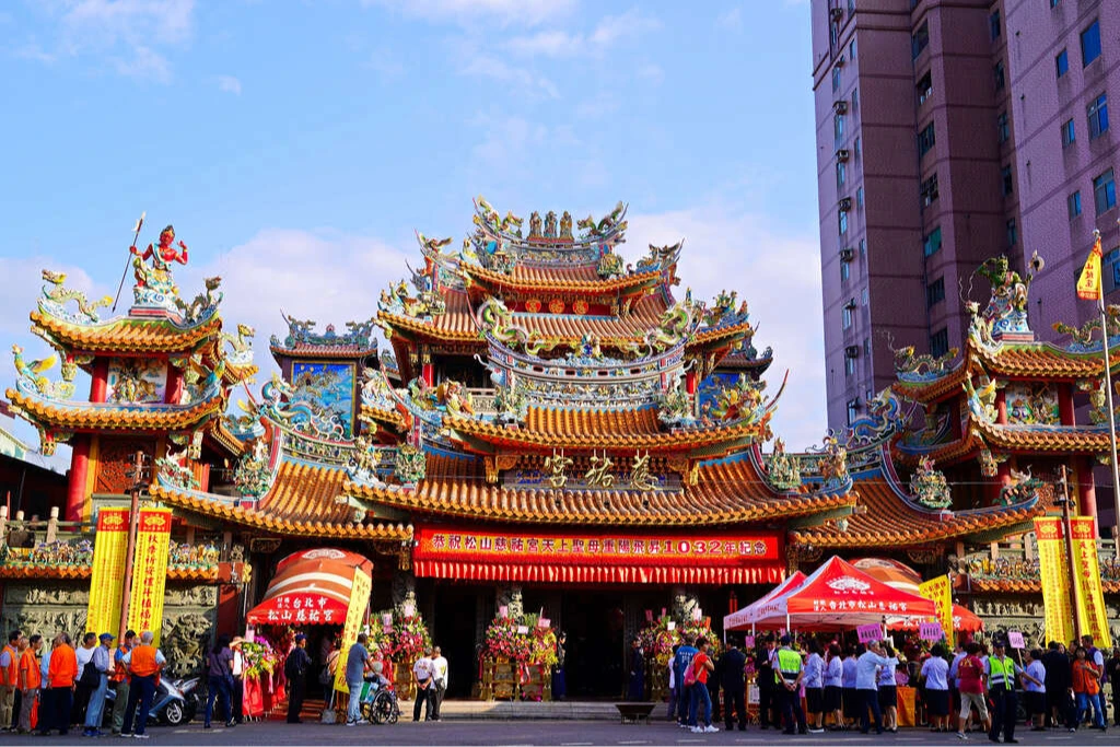 除了美食之外,饒河街夜市周邊的觀光資源也相當豐富,適合規劃成半日或一日遊行程。夜市東側入口旁就是香火鼎盛的「松山慈祐宮」,該廟建於1753年,主祀黑面媽祖,至今已有兩百多年歷史,是當地居民的精神信仰中心。慈祐宮建築莊嚴氣派,屋脊飾有雙龍朝福祿壽三仙,三川殿前還有一對少見的「雄獅張嘴、母獅閉嘴」石獅,是鎮殿之寶。春節期間,民眾在逛夜市前不妨先到廟裡參拜,祈求新的一年平安順遂。