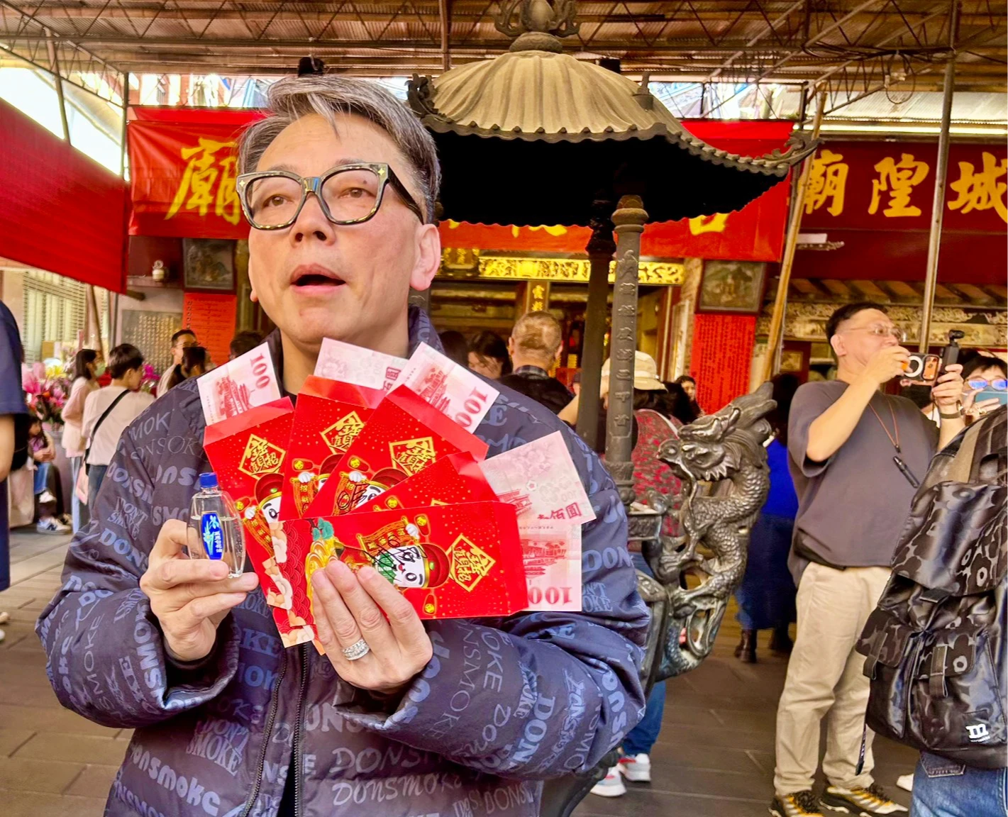 詹惟中快閃霞海城隍廟!限量紅包秒殺 揭密「發財油」招財術