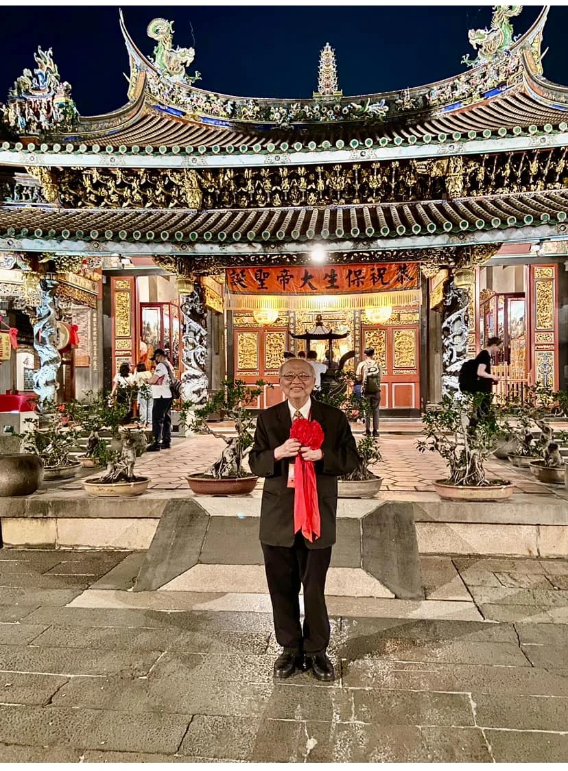 他說,第一個C,是Cell(細胞),用細胞來救人濟世。「所以我年輕時做骨髓移植,臨老創立公司,希望用醫療外泌體來治療疾病。所以我虔信保生大帝。道佛並濟。」第二個C,是Cinema(劇),所以喜歡歷史劇,希望有生之年能把『島之曦』的日本時代台灣史由舞台劇變連續劇。第三個C是Country(國家),「我是台派,父系是東寧遺民,母系是台灣原住民。所以我要善用我的餘生繼續闡揚這個理念。」